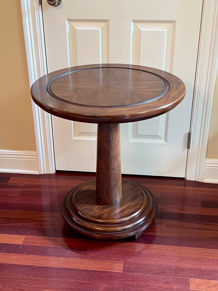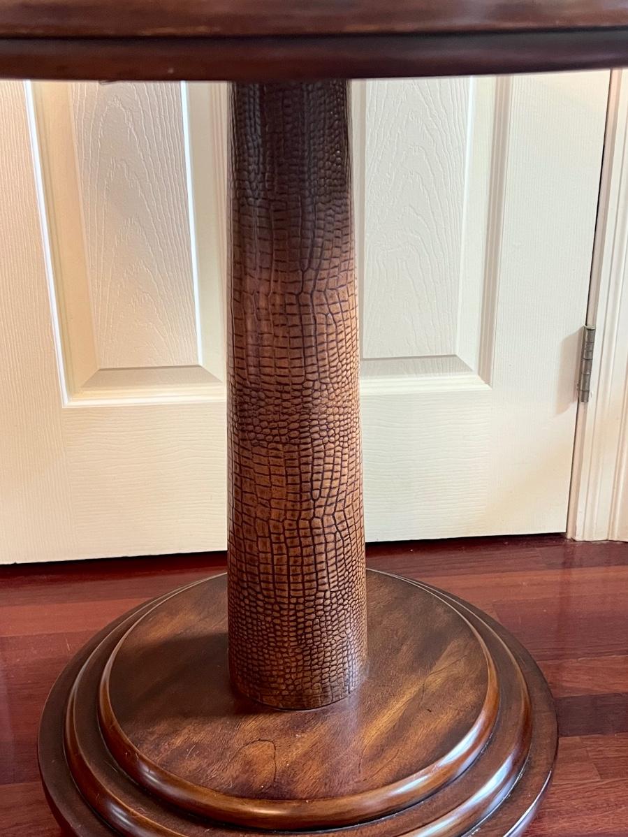 Solid Wood Inlaid Alligator Pedestal Side Table