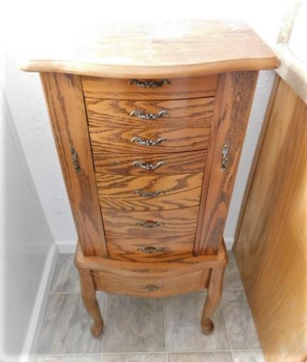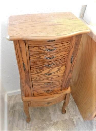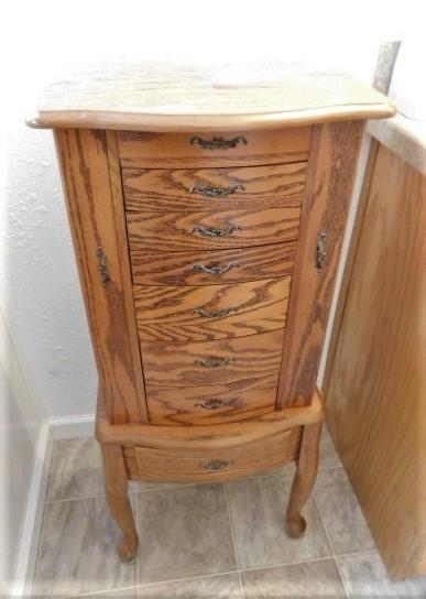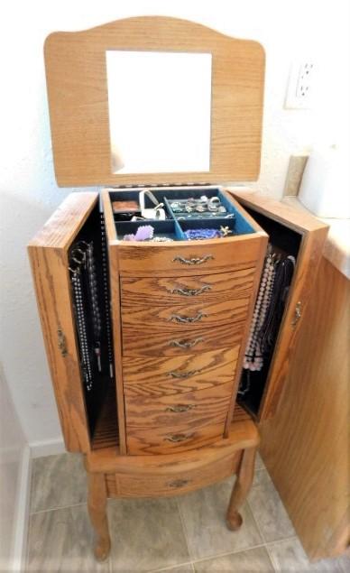 Solid Wood Jewelry Tower with Side Storage and Vanity Mirror (No Contents)- 17"x12"x40"