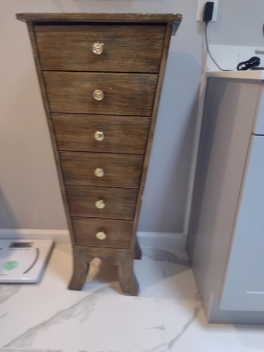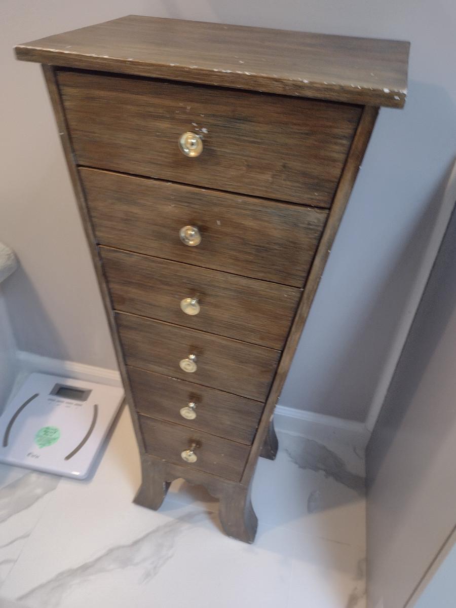 Solid Wood Jewelry/Storage Tower with Tapered Design- Six Drawers