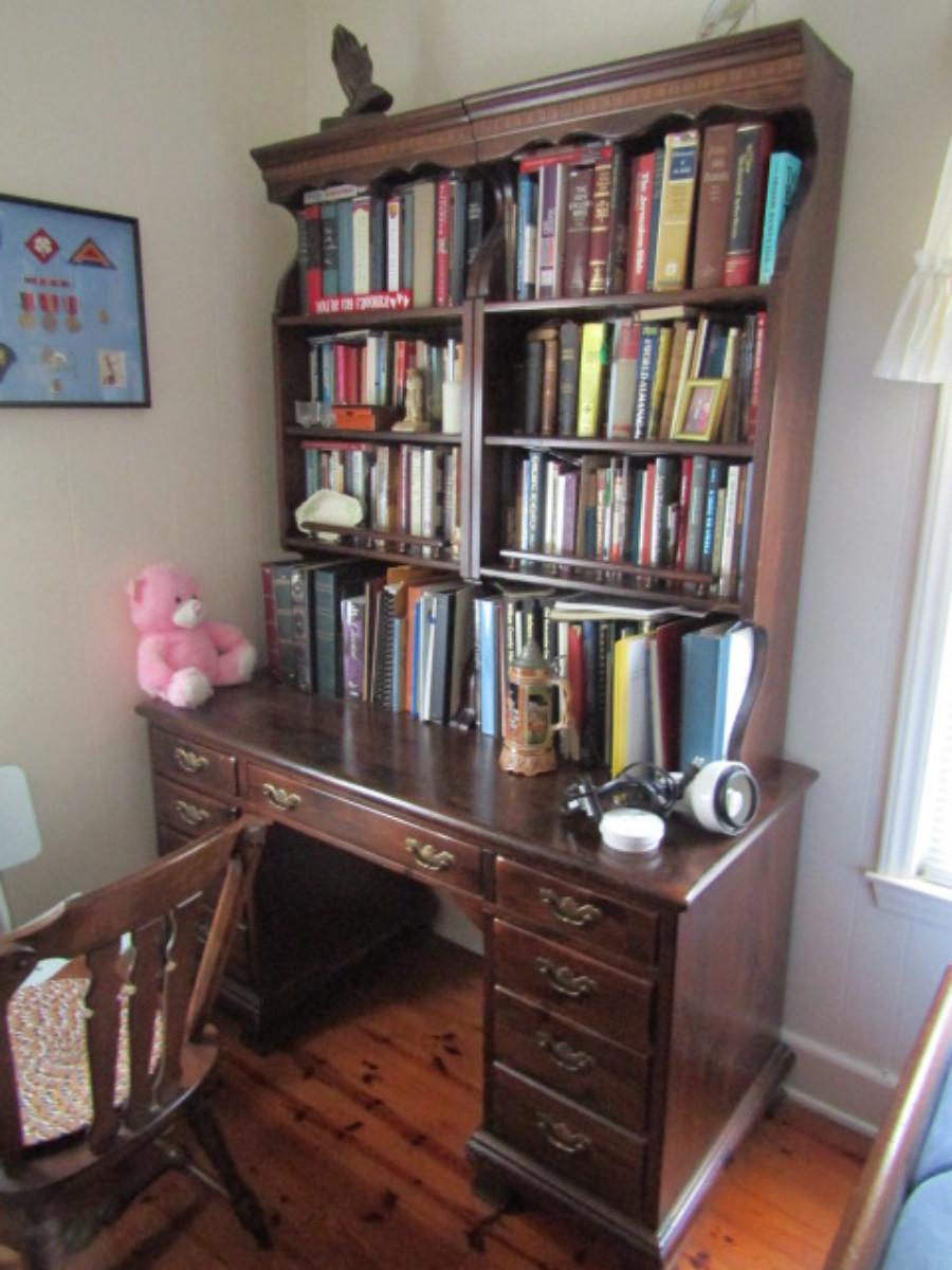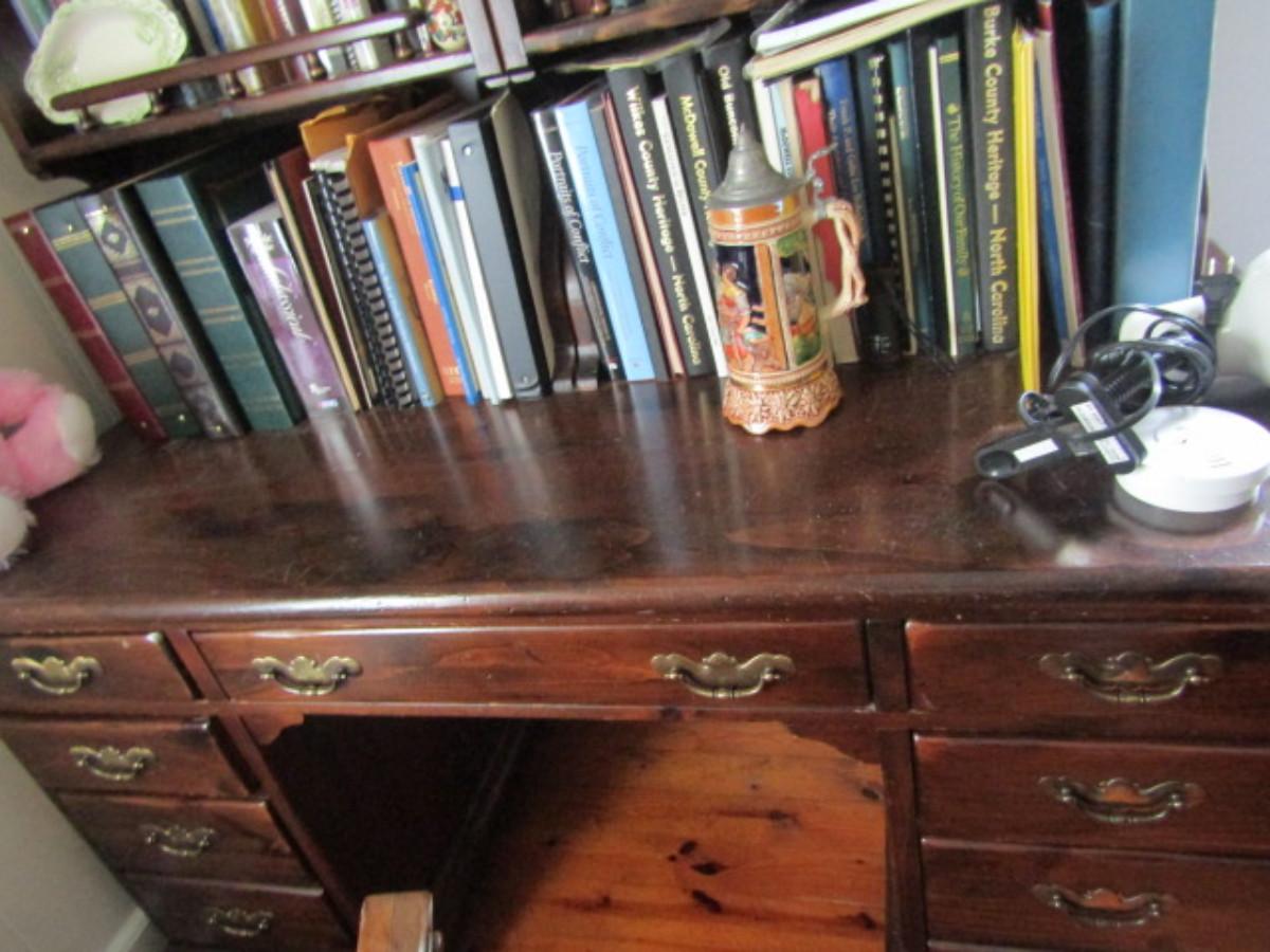 Solid Wood Knee Hole Desk with Book Shelf Topper (No Contents)