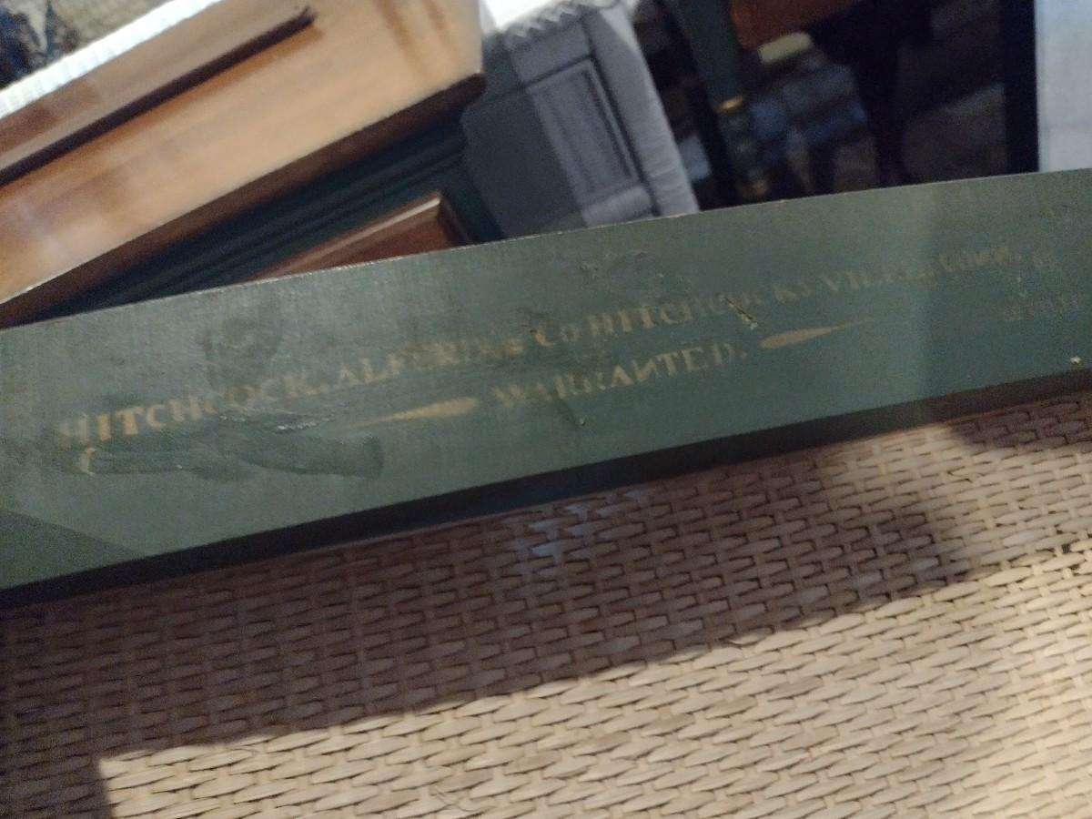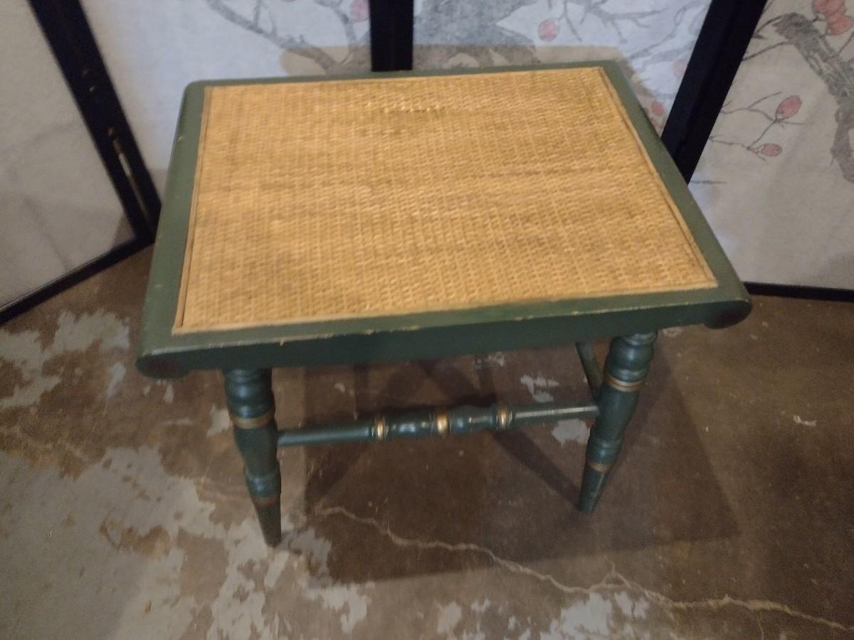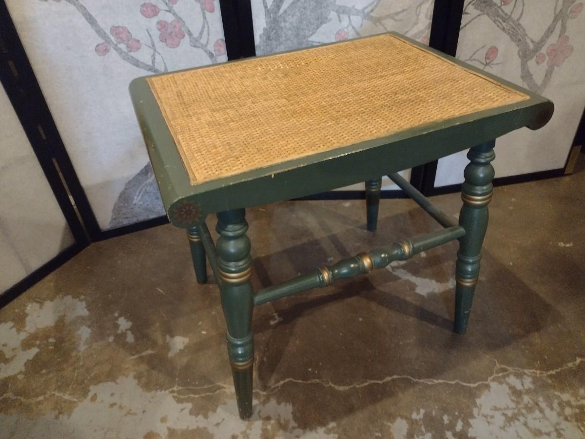 Solid Wood Lambert Hitchcock Bench Natural and Antiqued Green Finish with Stenciling Accent