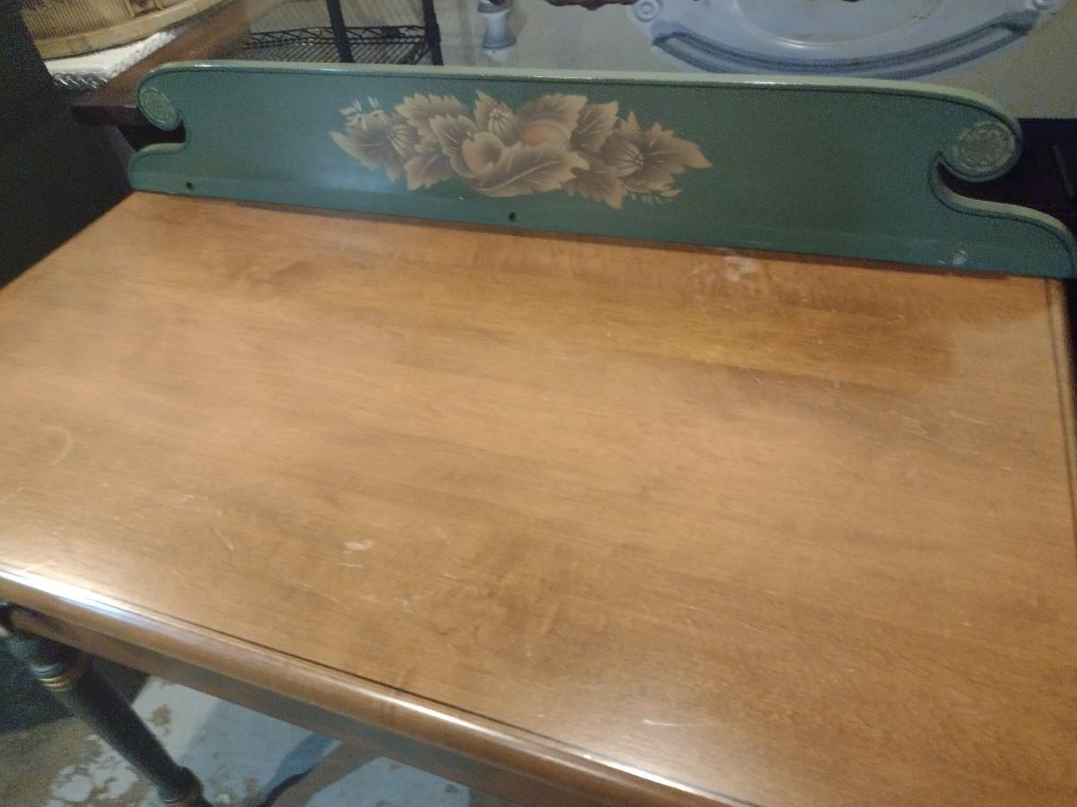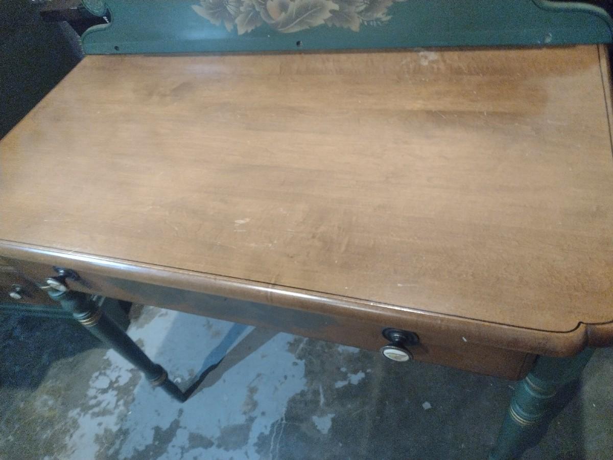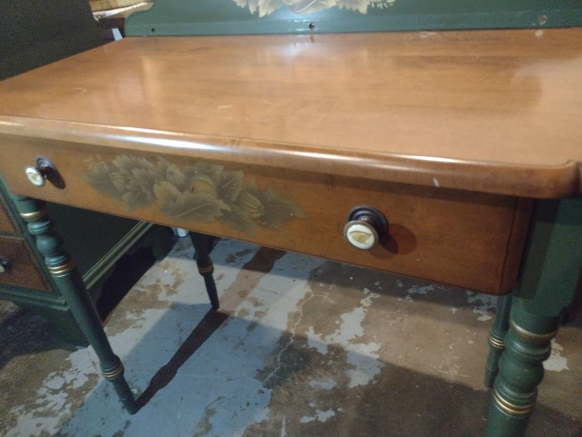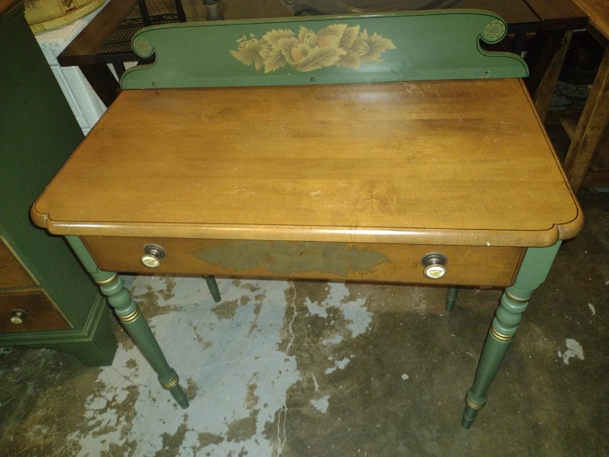 Solid Wood Lambert Hitchcock Writing Table Natural and Antiqued Green Finish with Stenciling Accent