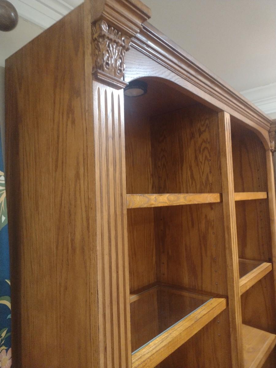 Solid Wood Lighted Bookcase with Adjustable Shelving Choice A