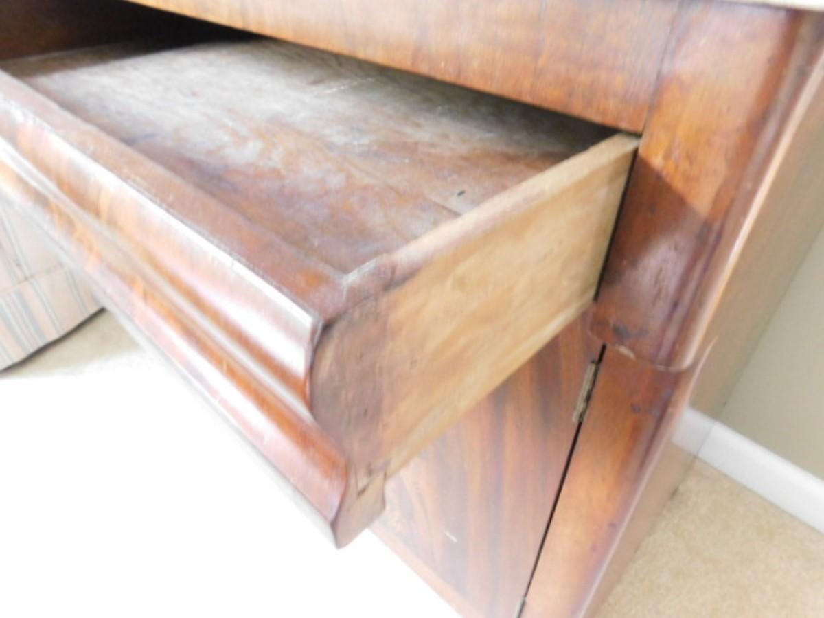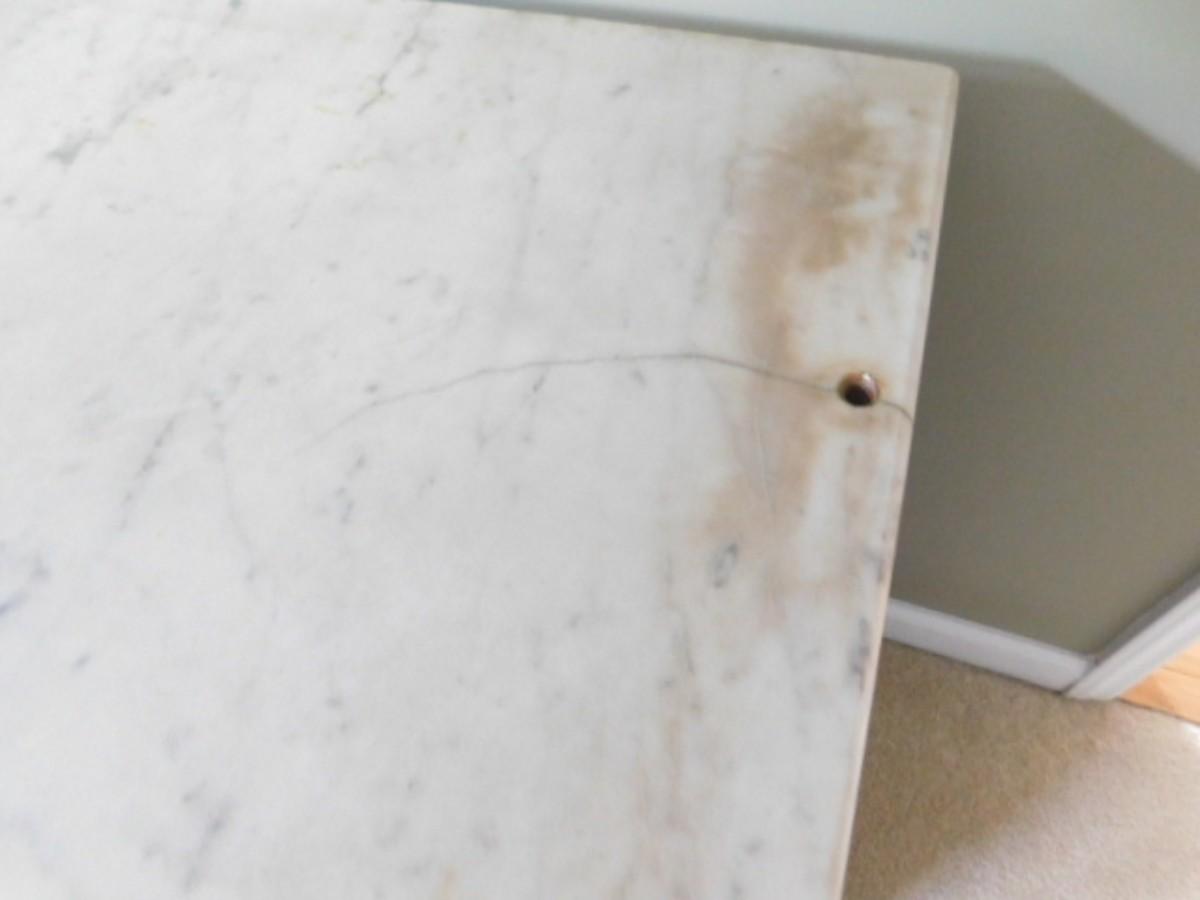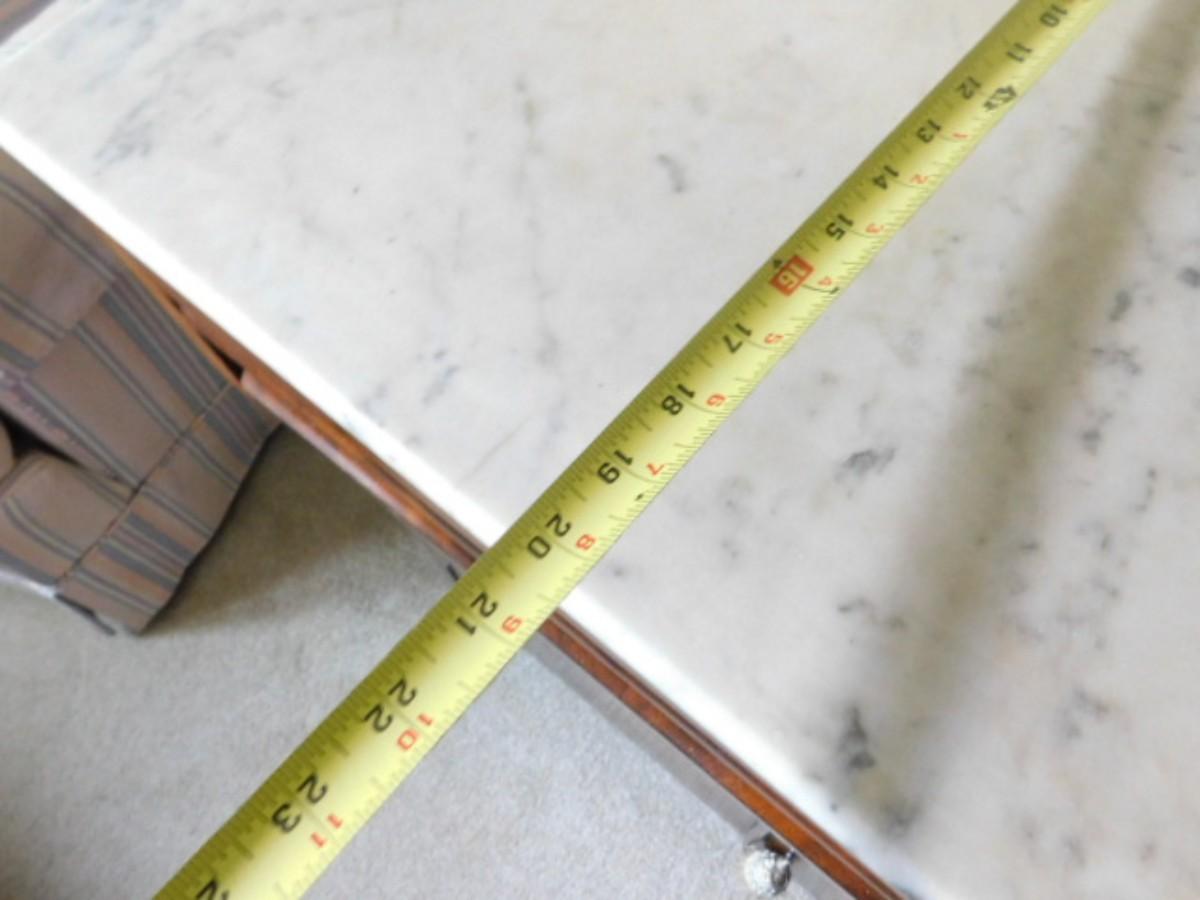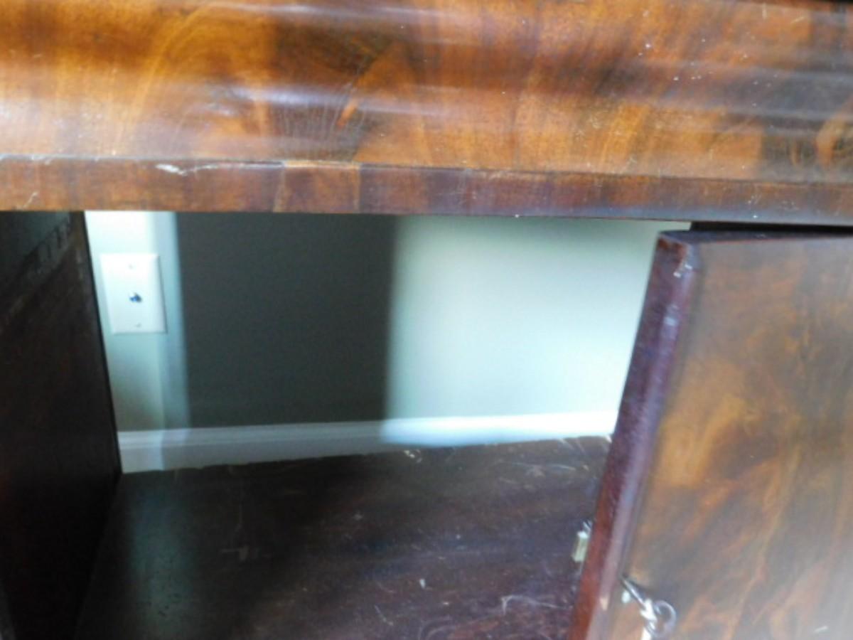 Solid Wood Mahogany Cupboard with Marble Top. Marble has crack on corner as shown. Main floor item