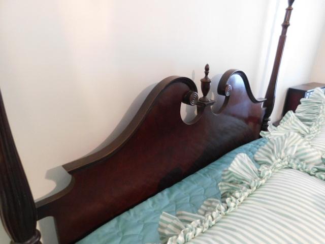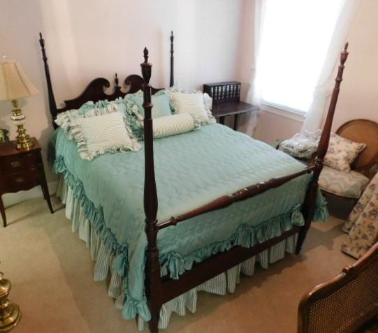 Solid Wood Mahogany Full Size Rice Poster Bed with Mattress Set and Bedding