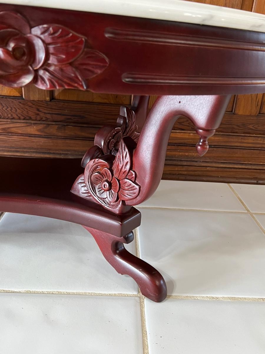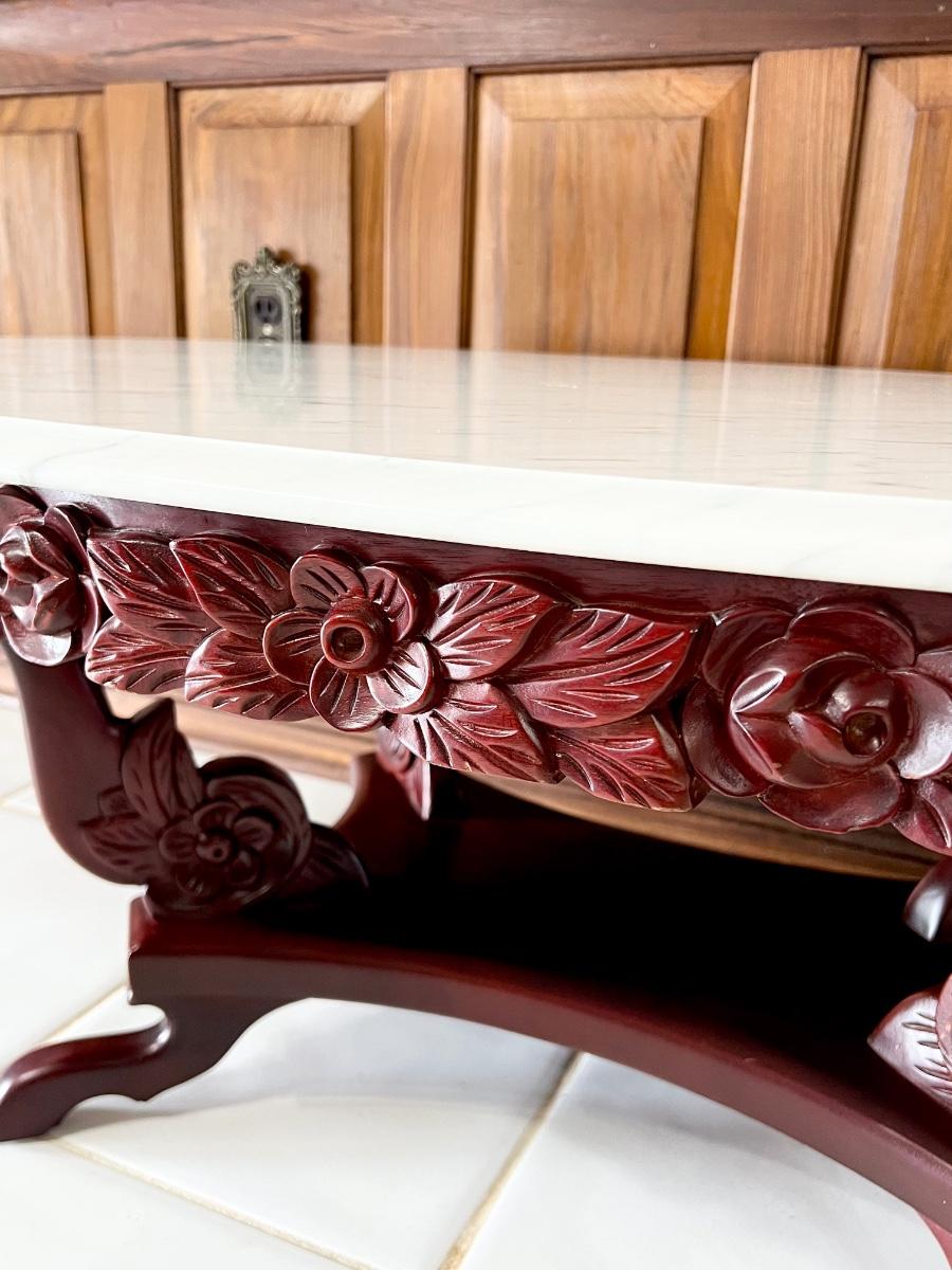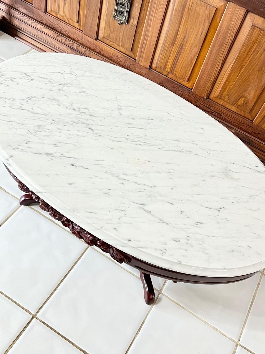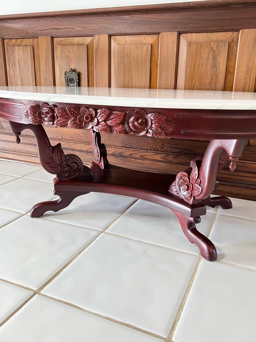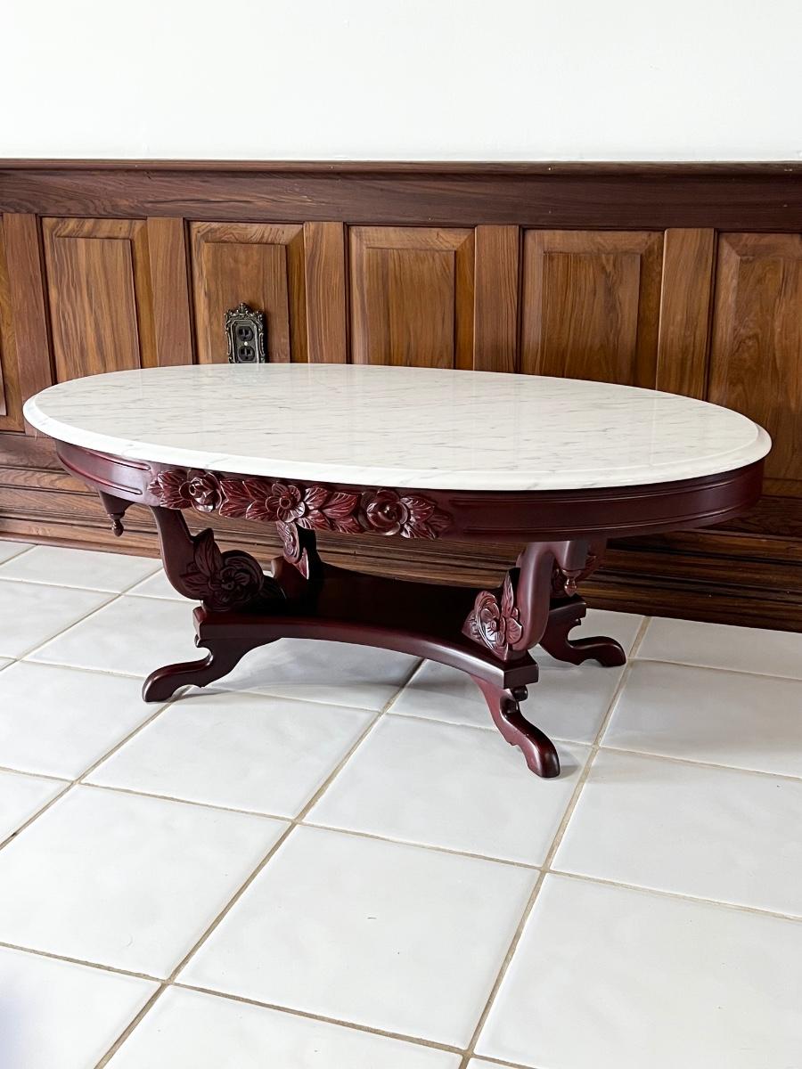 PELHAM SHELL & LECKIE ~ Solid Mahogany Rose Carrara Marble Top Coffee Table