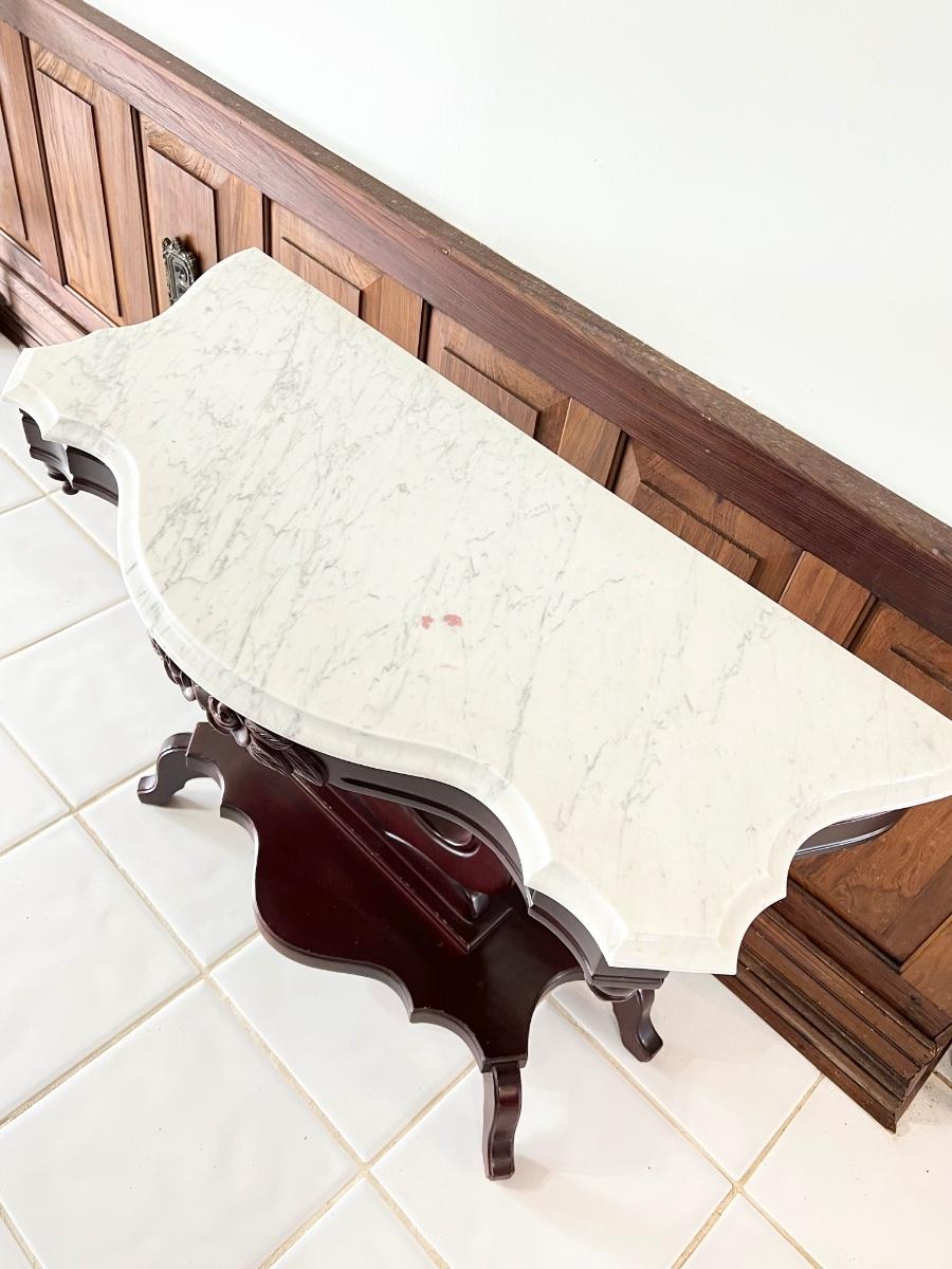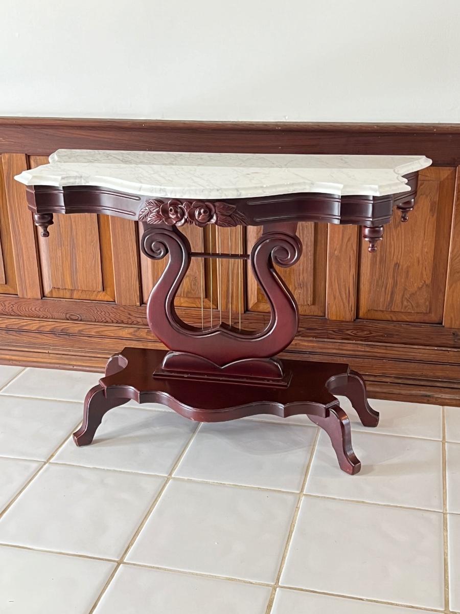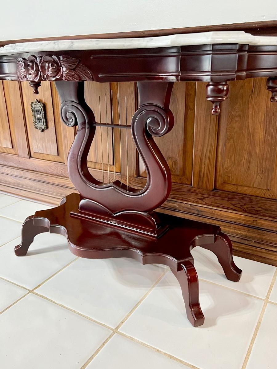 PELHAM SHELL & LECKIE ~ Solid Wood Mahogany Carrara Marble Top Harp Entry/ Sofa Table
