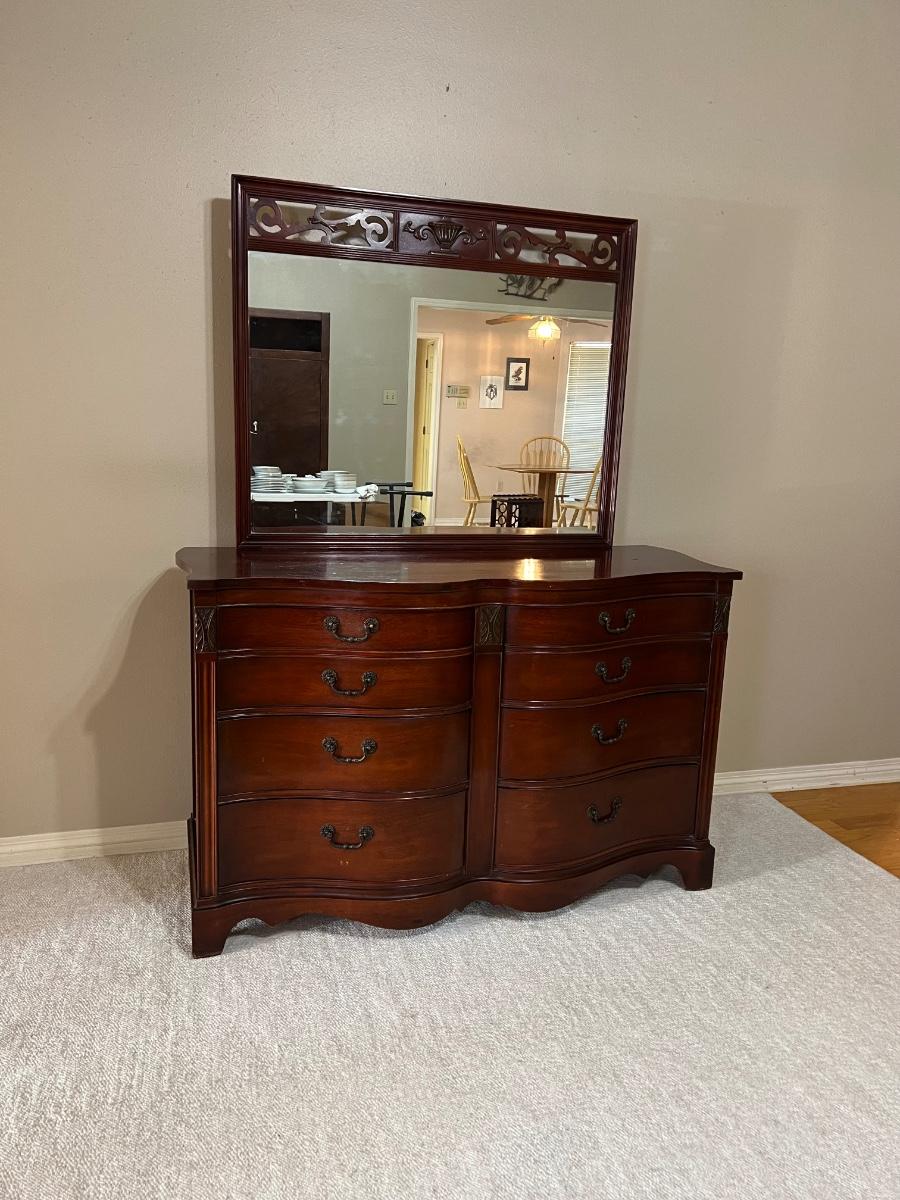 Solid Wood Mahogany French Provincial Mirrored Dresser