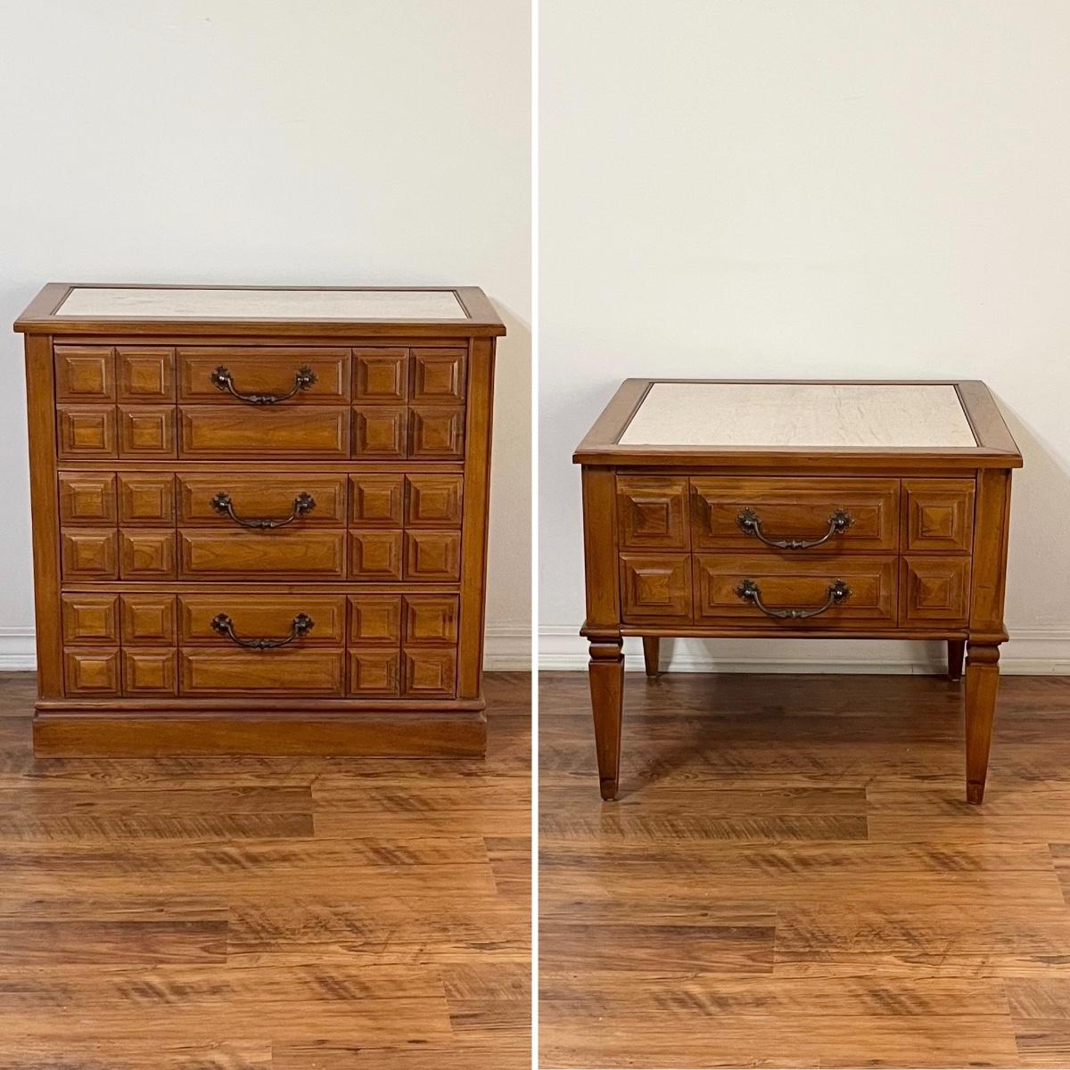 Solid Wood Marble Top Chest Of Drawers & Nightstand