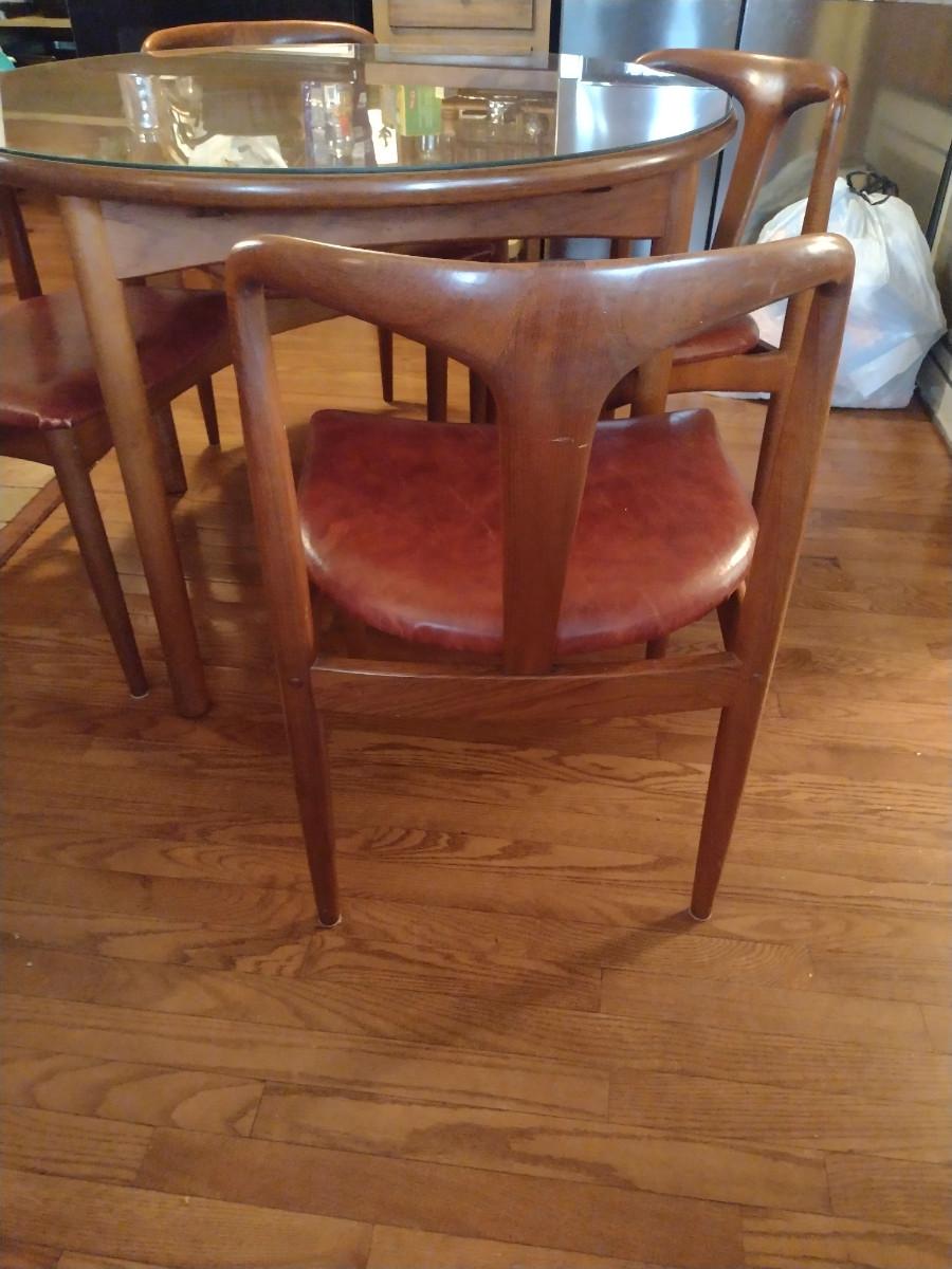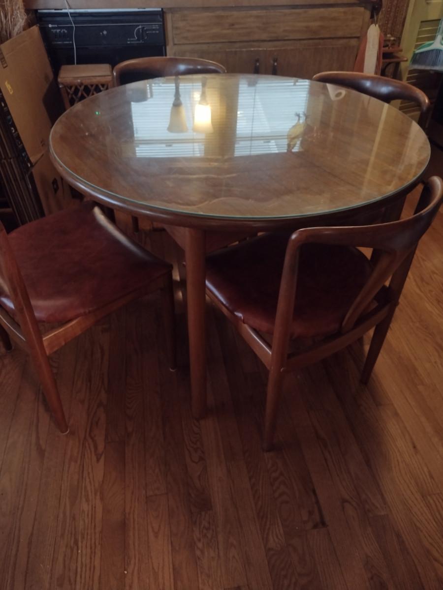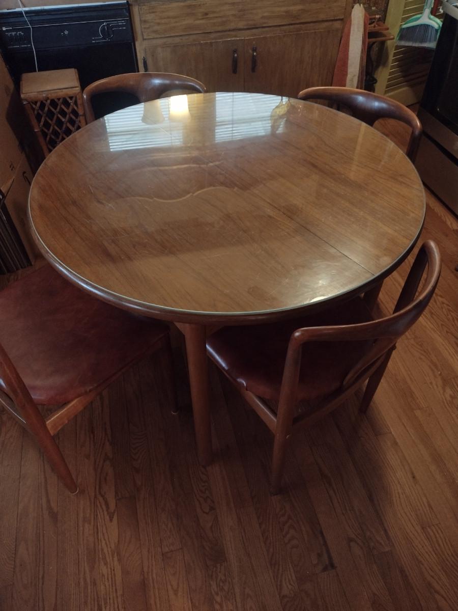 Solid Wood MCM Style Young Hinkle Round Table and Four Chairs