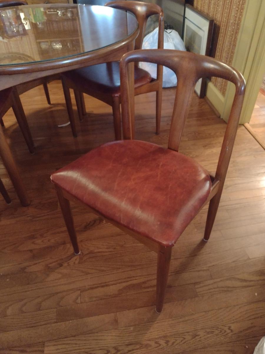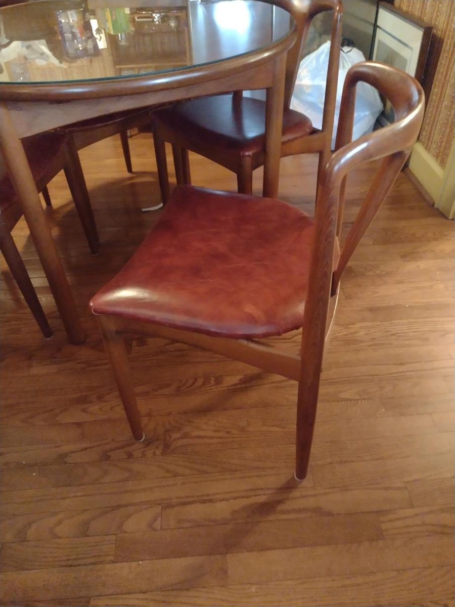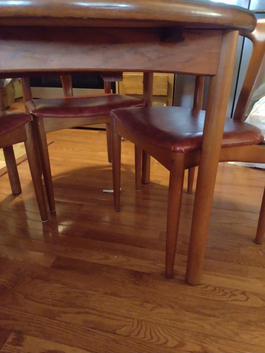 Solid Wood MCM Style Young Hinkle Round Table and Four Chairs