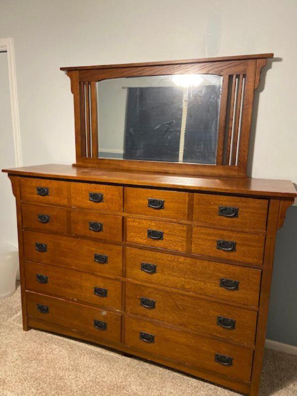 Solid Wood Mission Style Dresser - appears to be modern - condition consistent with use (minor scratches and cosmetic damage)
