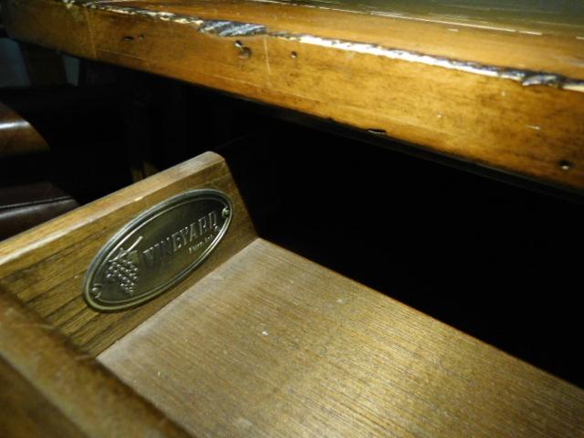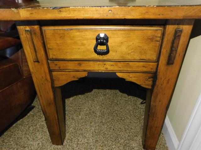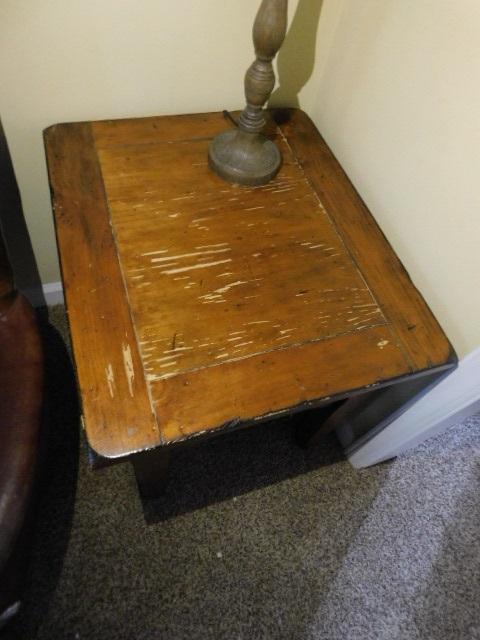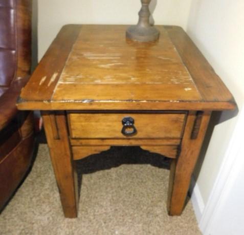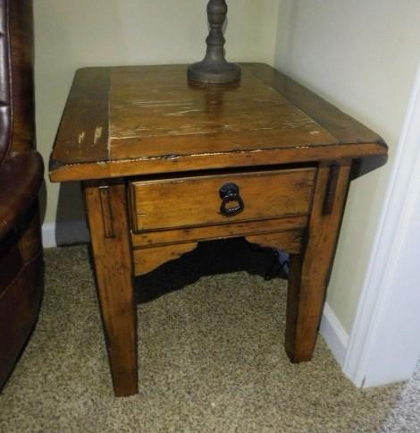Solid Wood Amish Style Side Table with Drawer By Vineyard 22"x26"x22" has some wear to the top surface but has a great appearance otherwise. Very solid