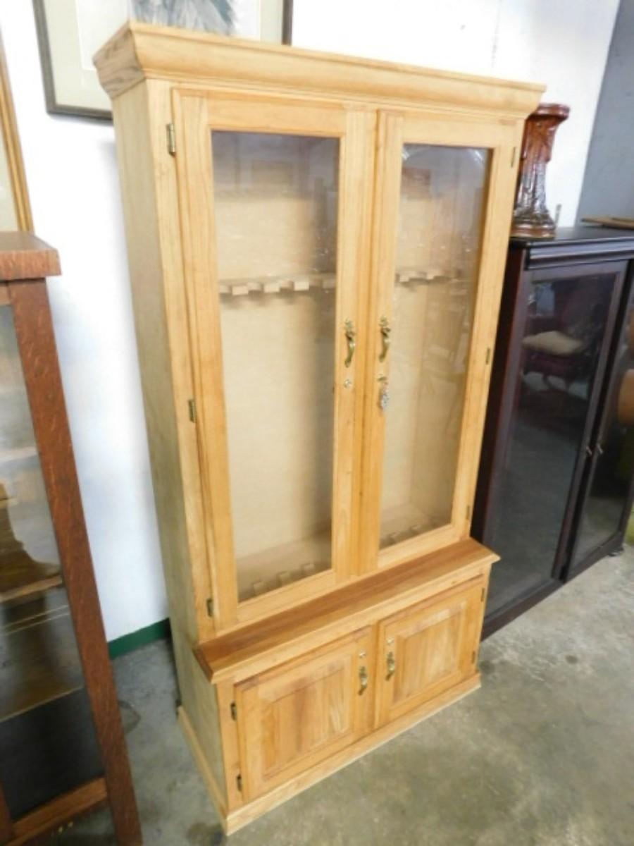 Solid Wood Oak 10 Stock Gun Cabinet with Keys