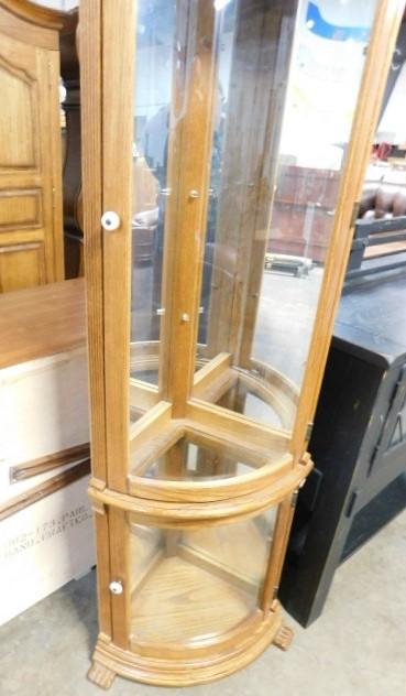 Solid Wood Oak Corner Curio Cabinet with Glass Shelves