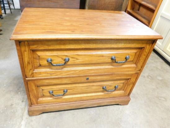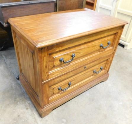 Solid Wood Oak Finish Double Drawer Filing Cabinet