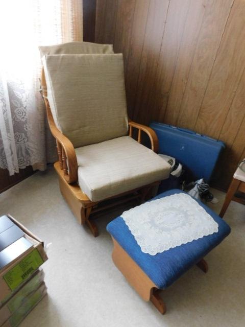 Solid Wood Oak Glider Rocker with Glide Ottoman