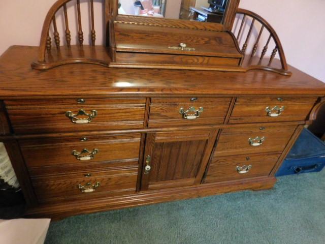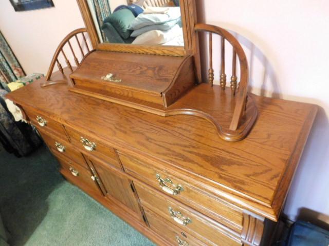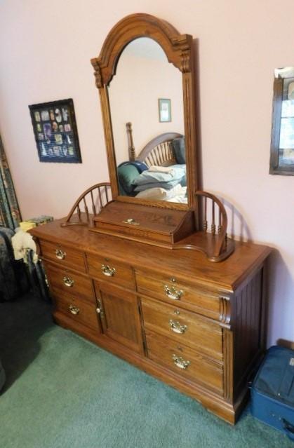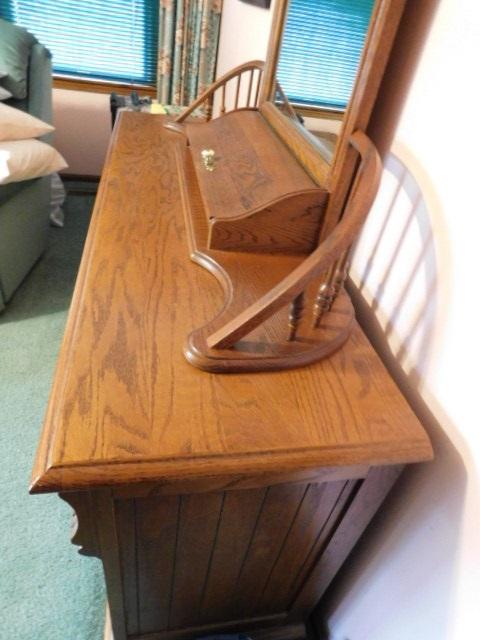 Solid Wood Oak Seven Drawer Dresser with Mirror by Lexington