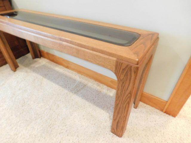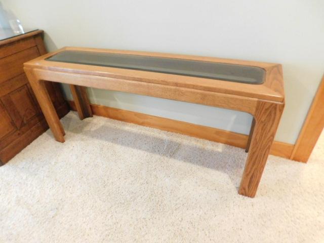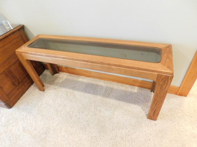 Solid Wood Oak Sofa Table with Glass Top Insert downstairs