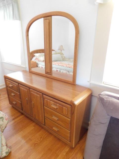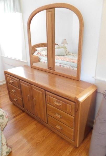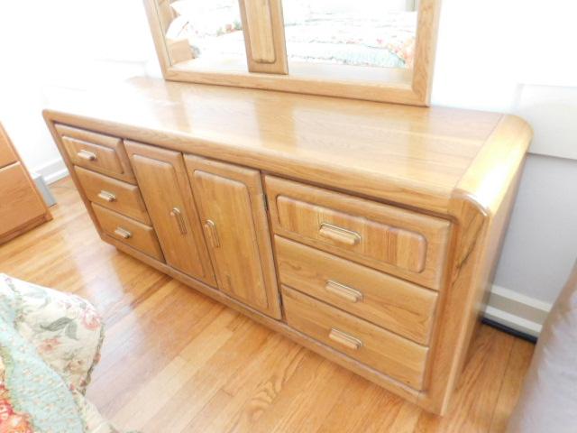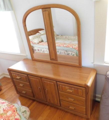 Solid Wood Oak Stretch Dresser with Mirror 67"x18"x71"