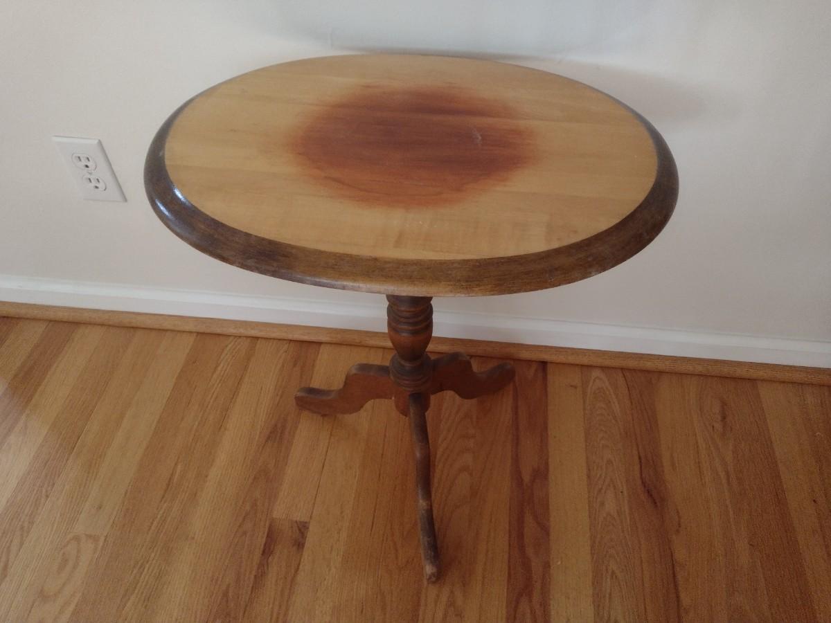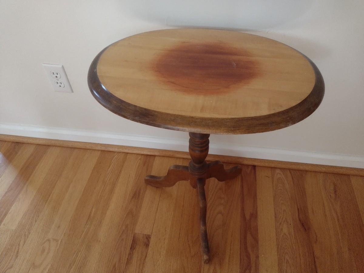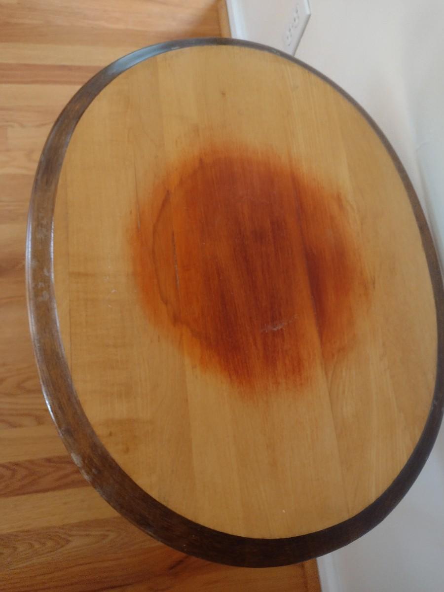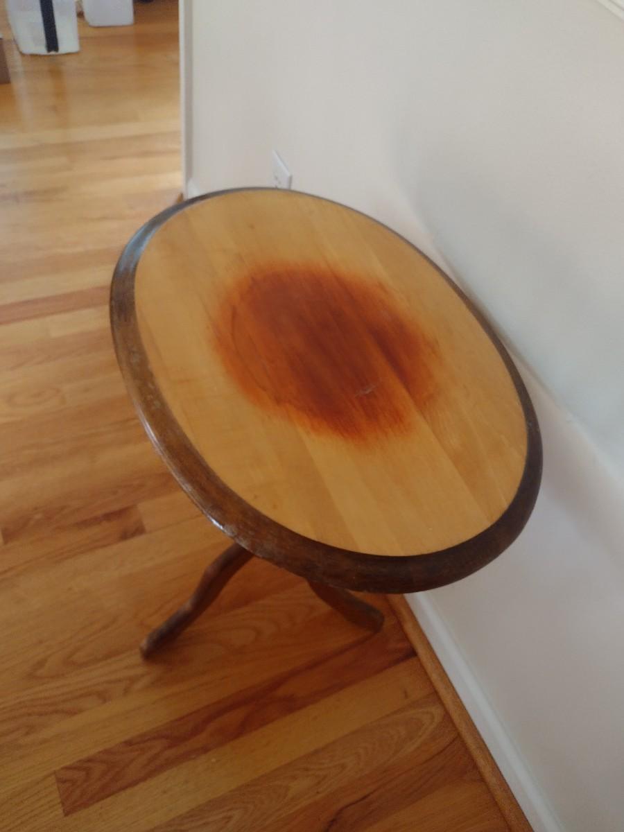 Solid Wood Oval Side Table has water stain on surface as shown.