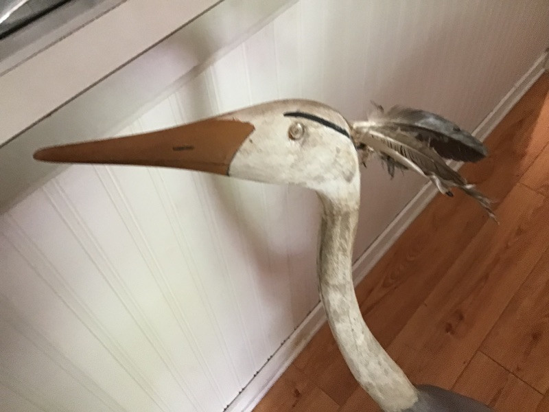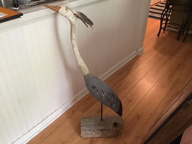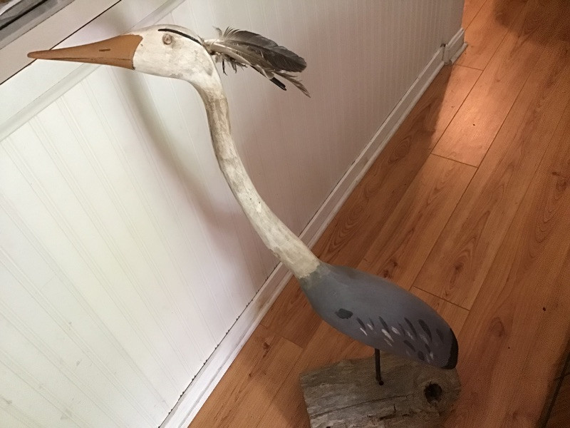 A beautiful piece of art. Solid wood painted heron. Stands approx 40 H.