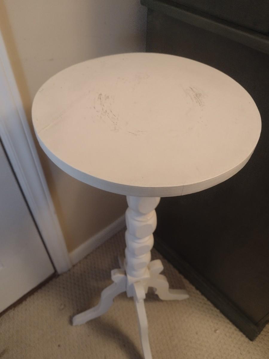 Solid Wood Painted Plant Stand. Has a repair area as shown.