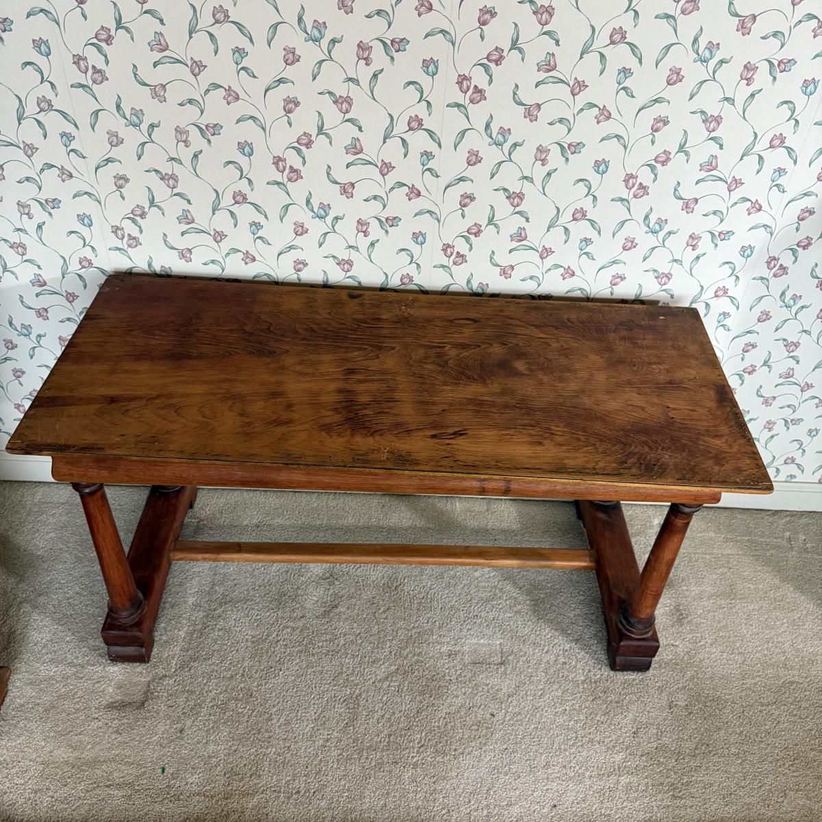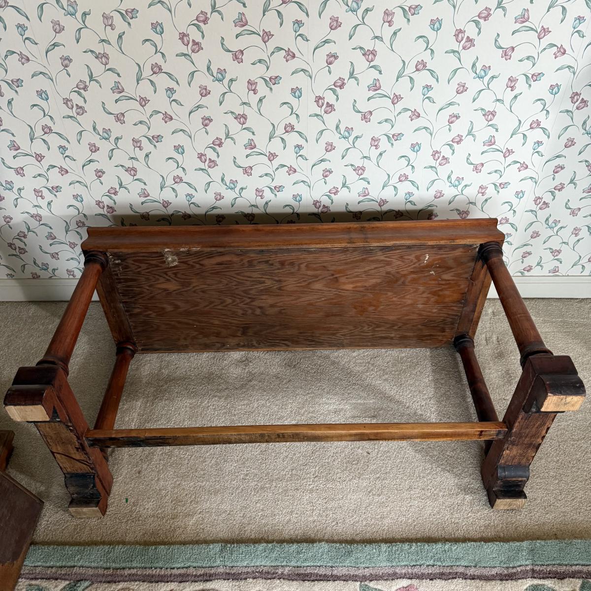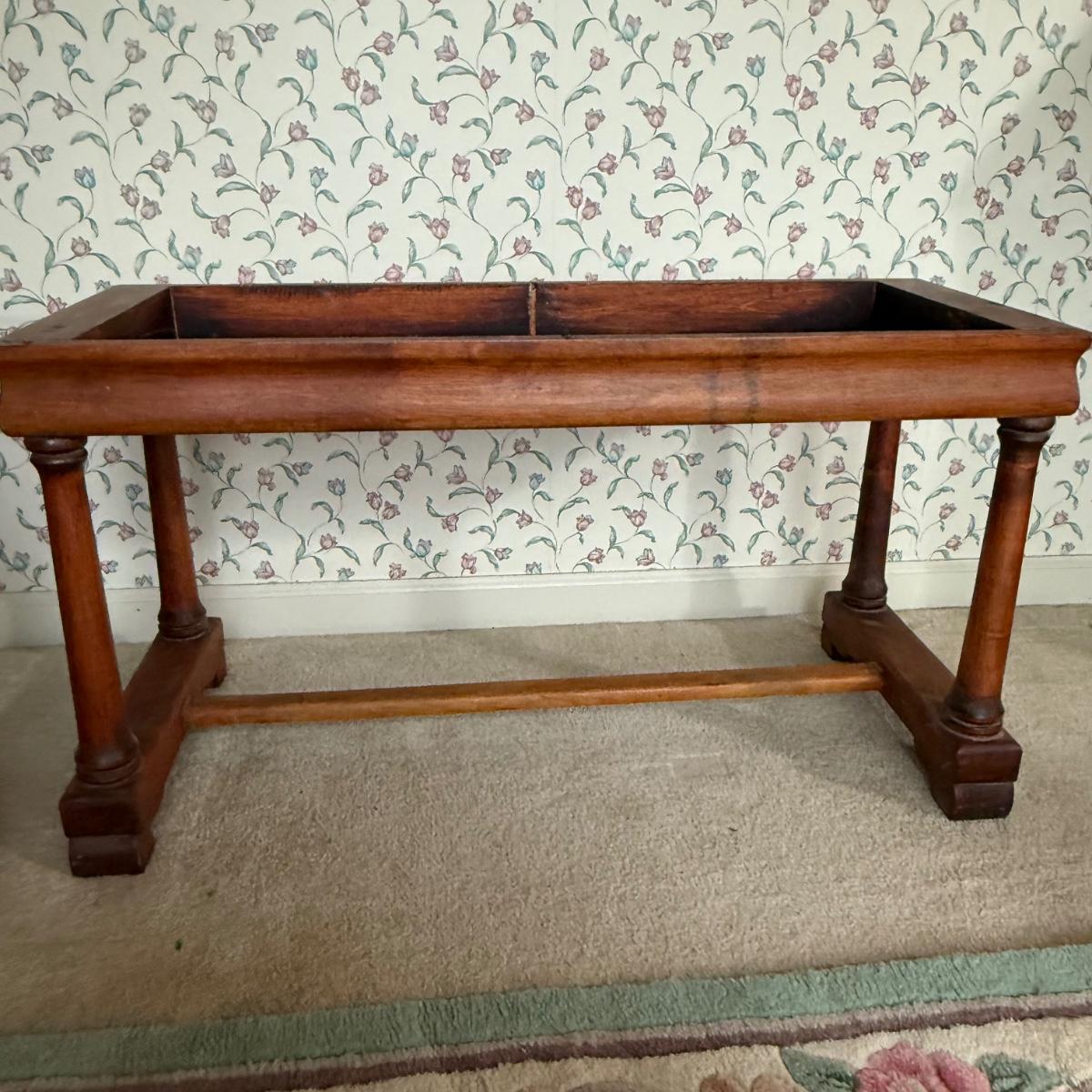 This lot contains a sunning solid wood piano bench. The lid to the bench is not secured to it and does come off. It measures 38” x 16” x 20.5”H. There are some small scrapes on the corners and edges, see pictures for details. Local pick up only.