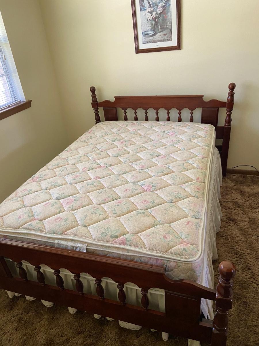 Solid Wood Spindle Queen or Double Bed & Sealy Full Mattress