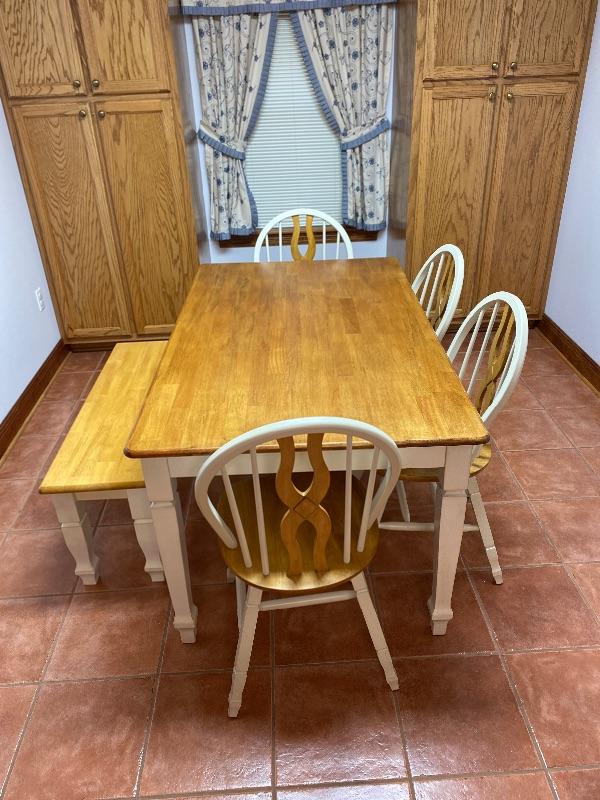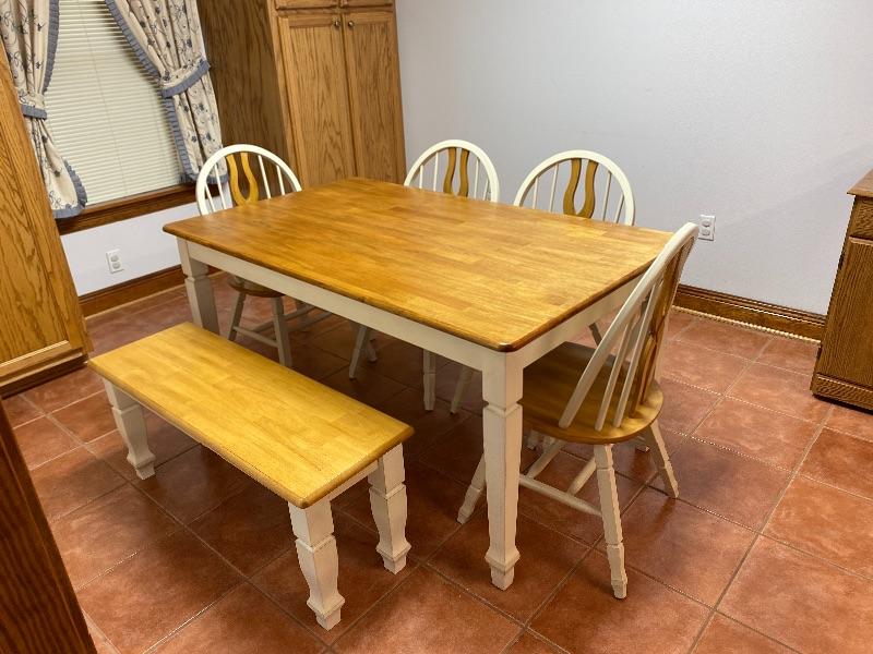 Solid Wood Rectangle Dining Table with 4 Chairs and Bench
