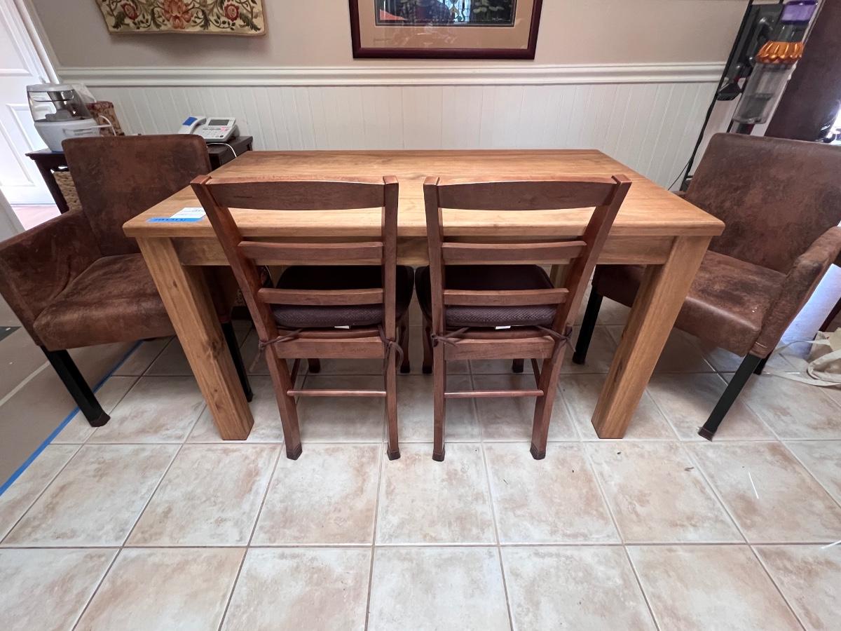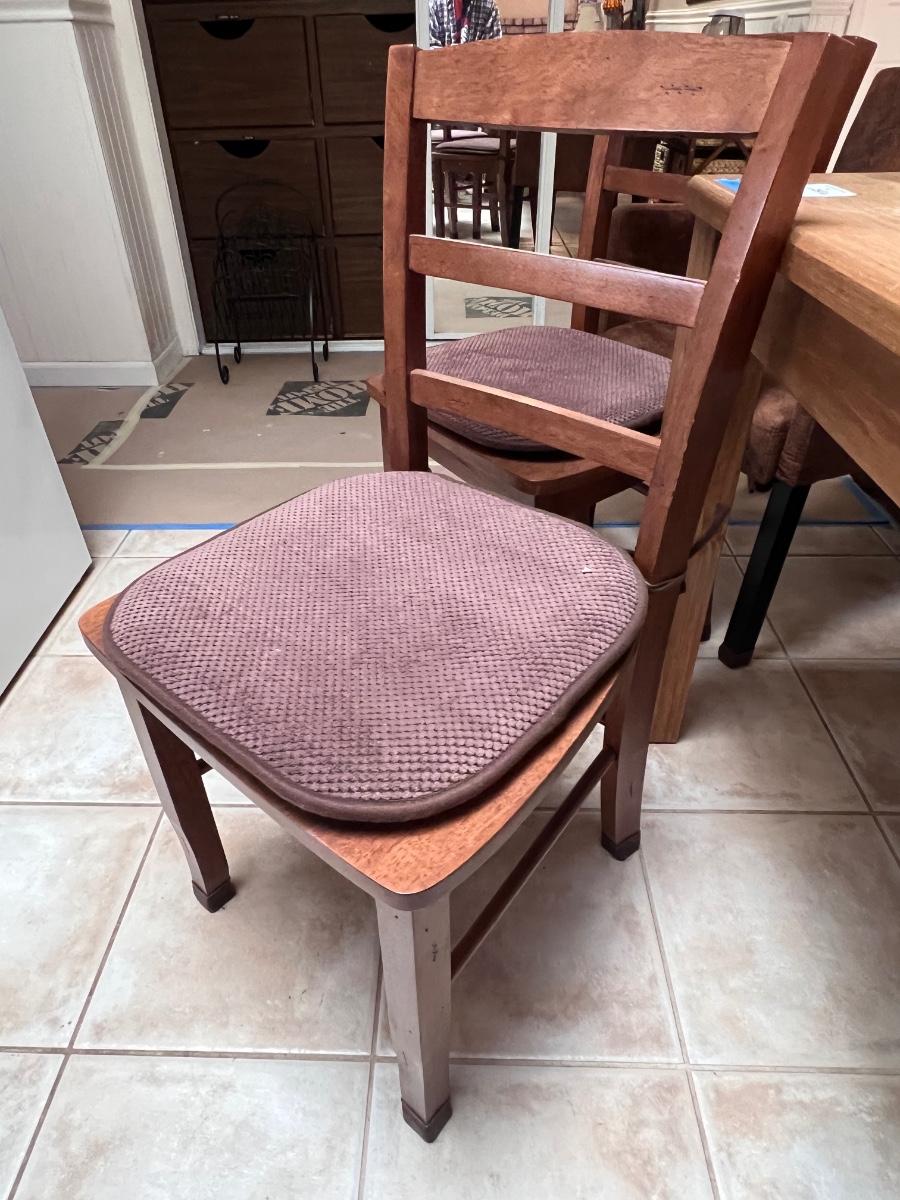 Sets of 2 different chairs and table. Measurements in photos. In good condition.
