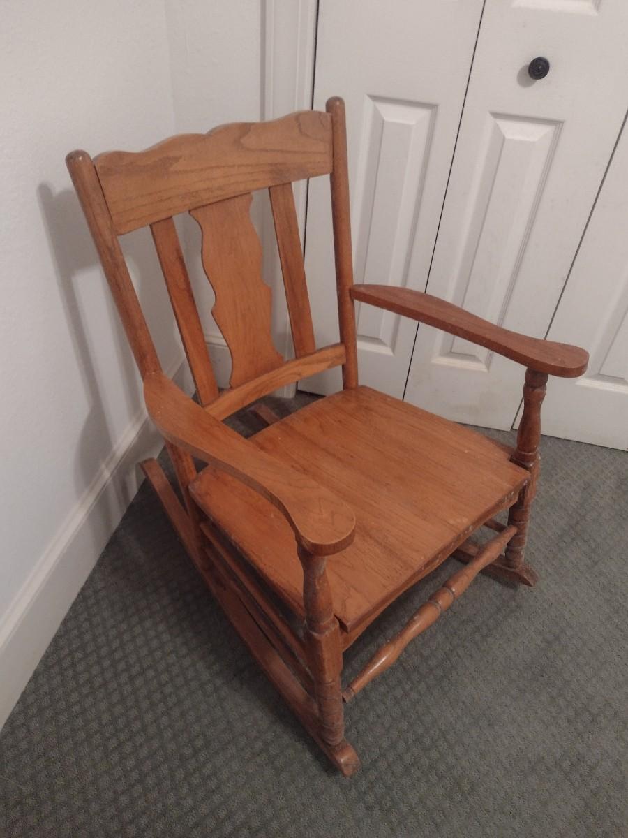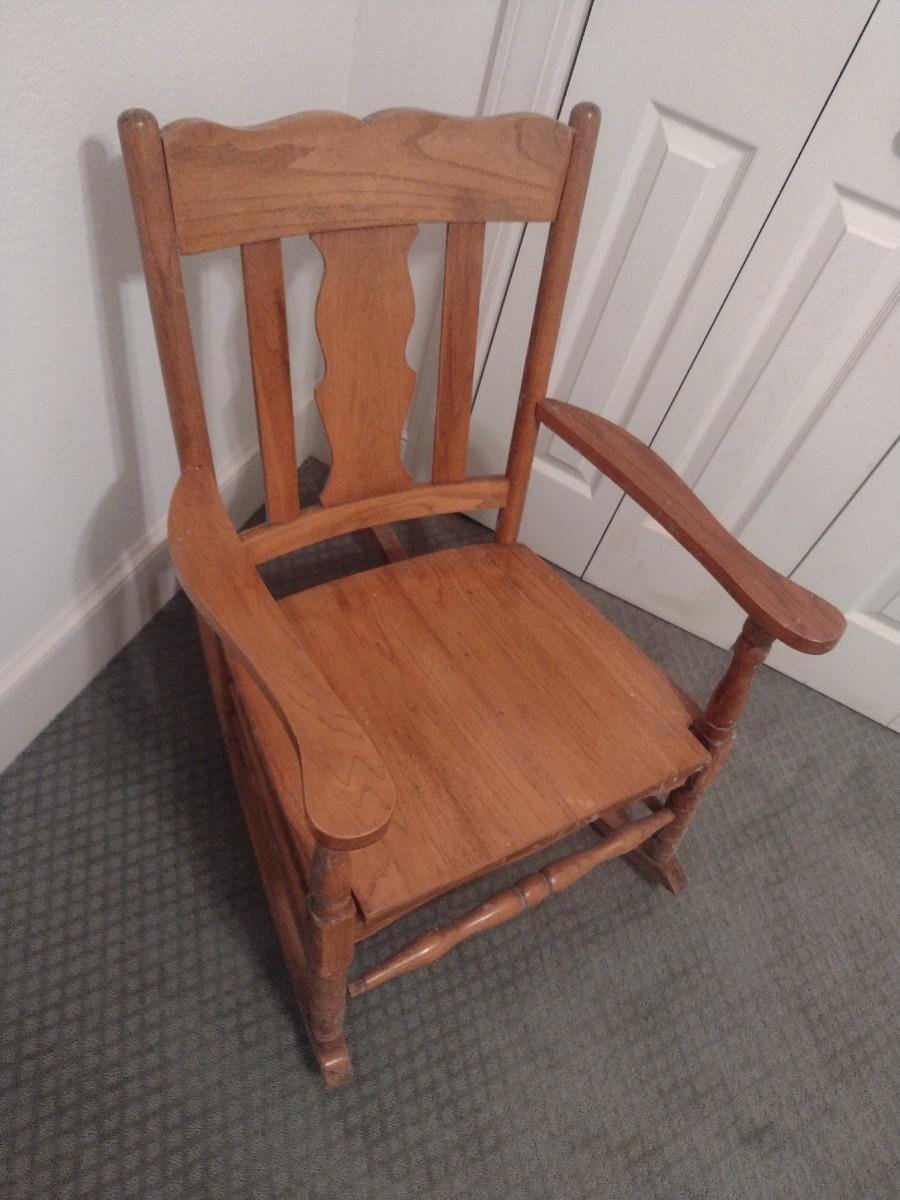 Solid Wood Rocking Chair. Lower-level item. There are stairs to the main floor