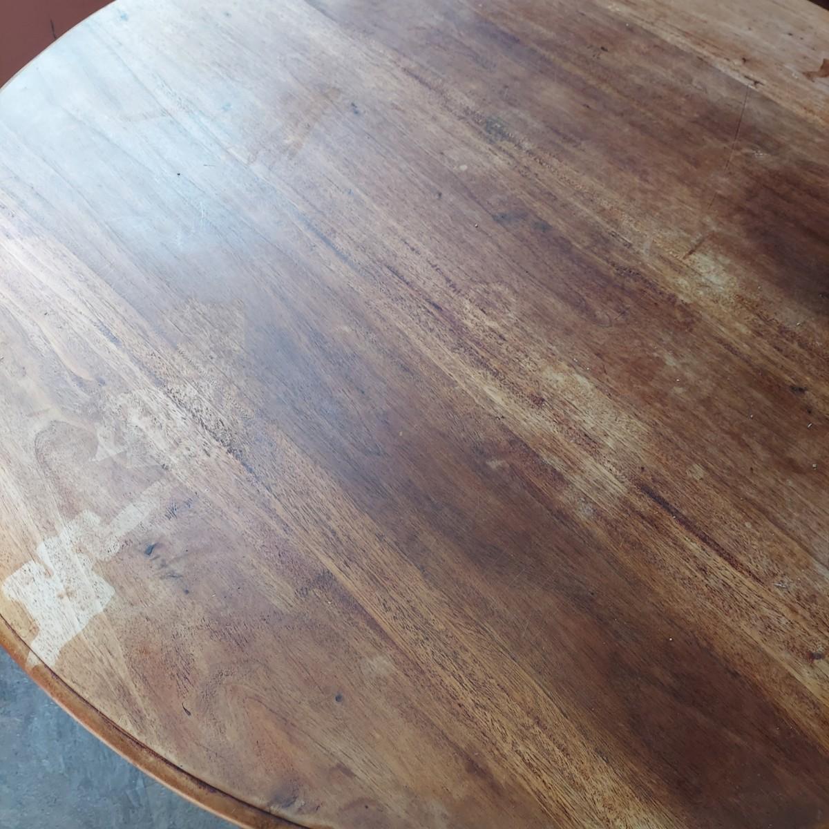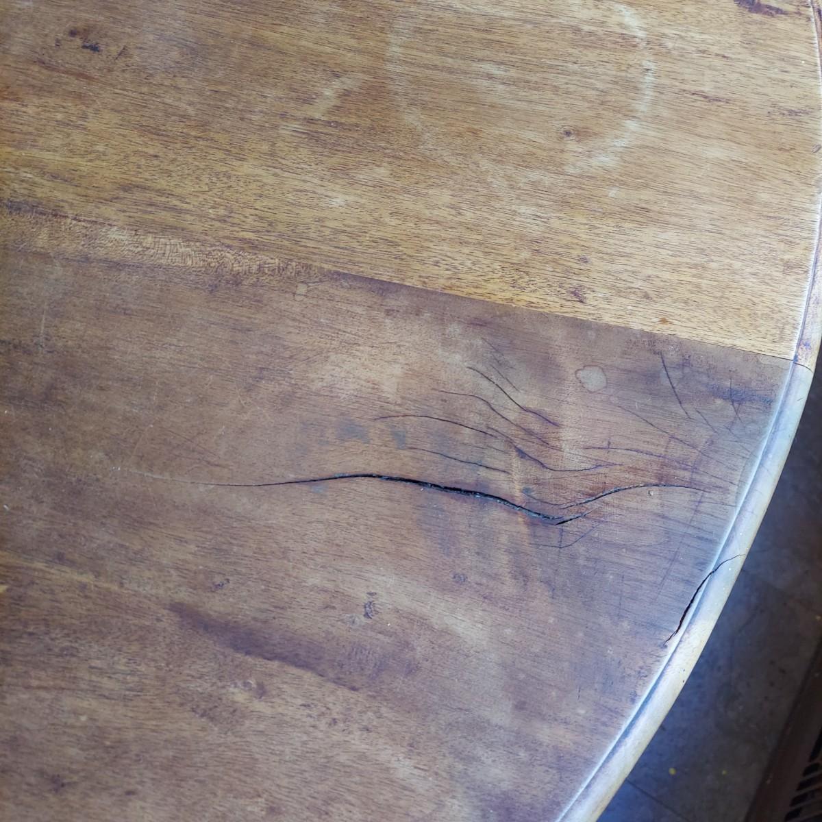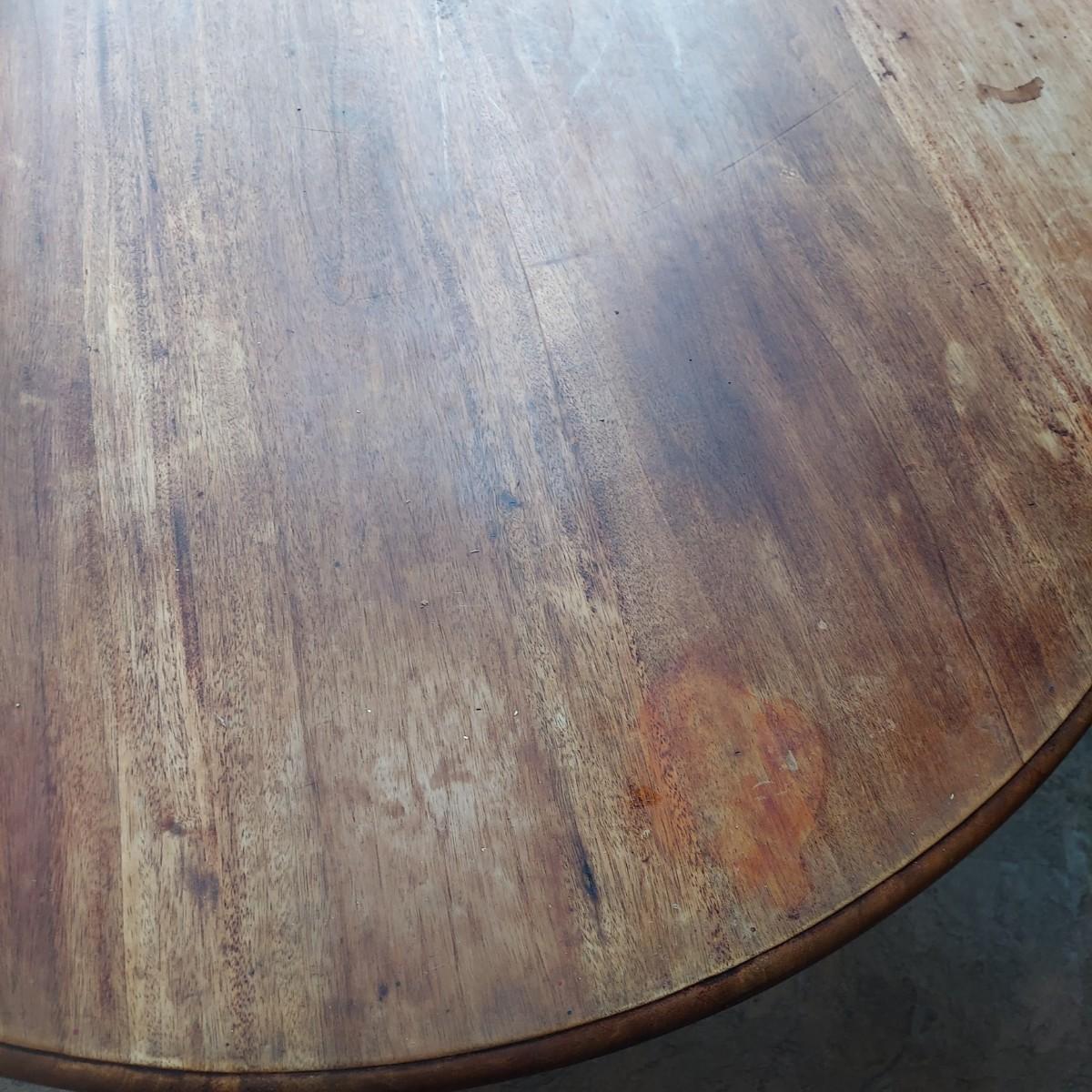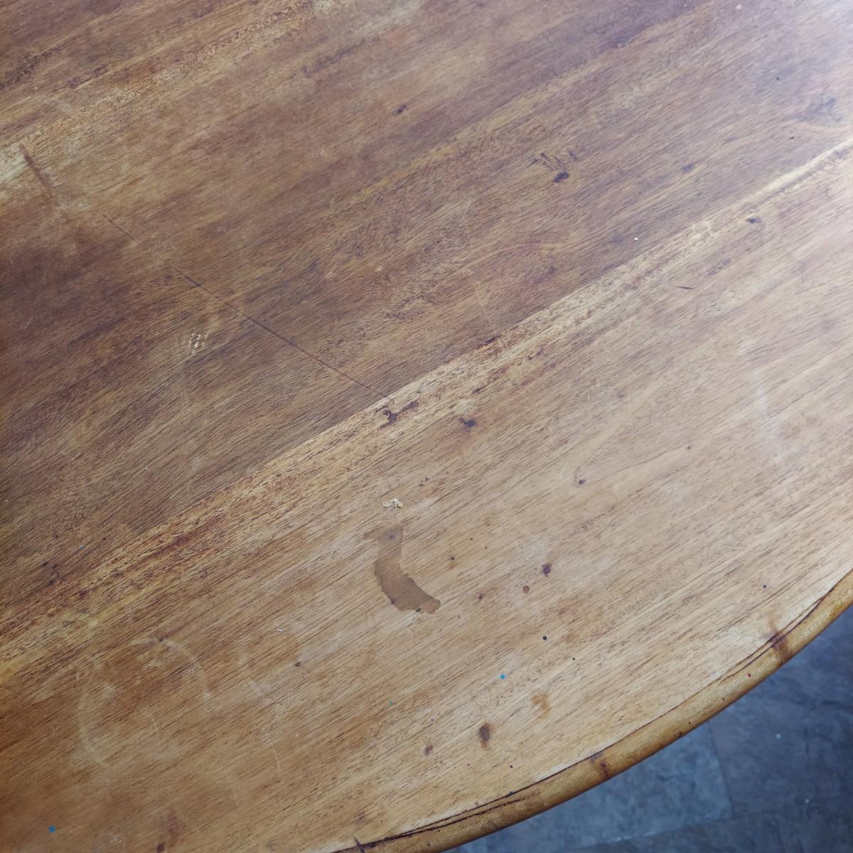 Solid wood round dining room table with carved pedestal and claw feet. Table measures 43"D x 30"H. Some condition issues on top. Please see photos for details. Local Pickup Only