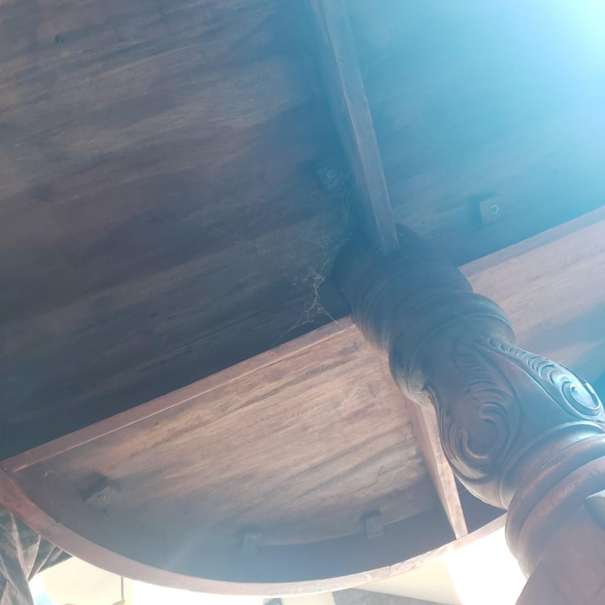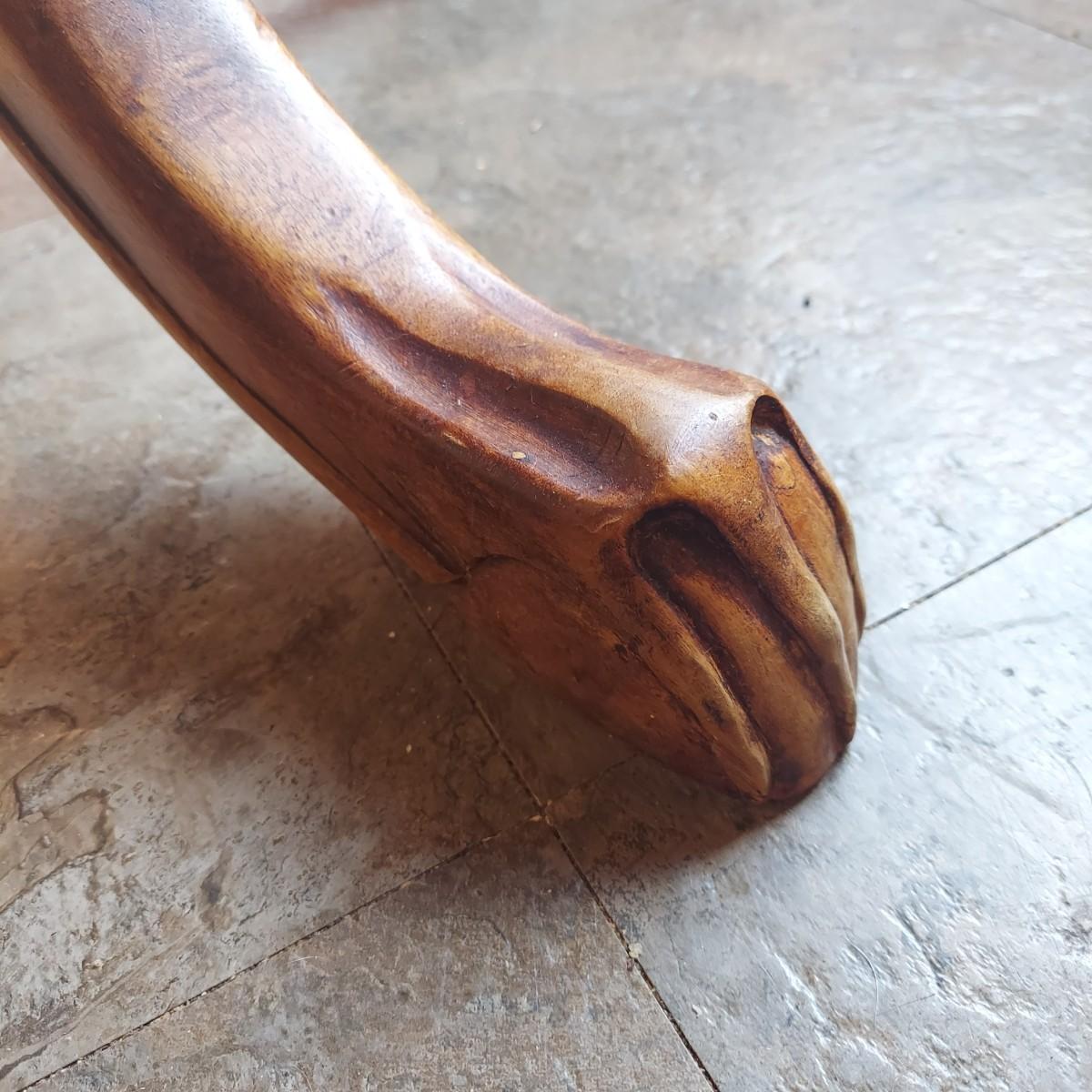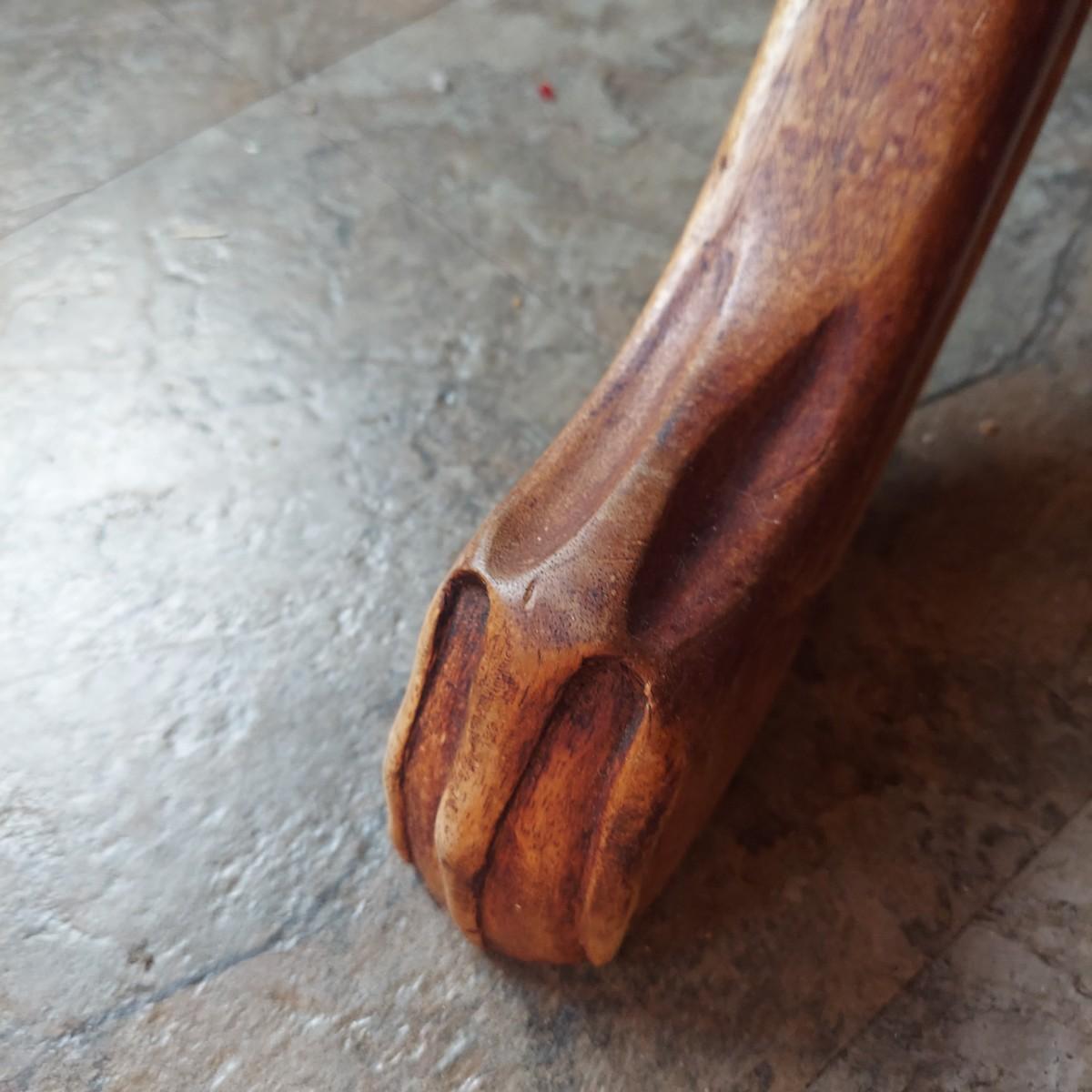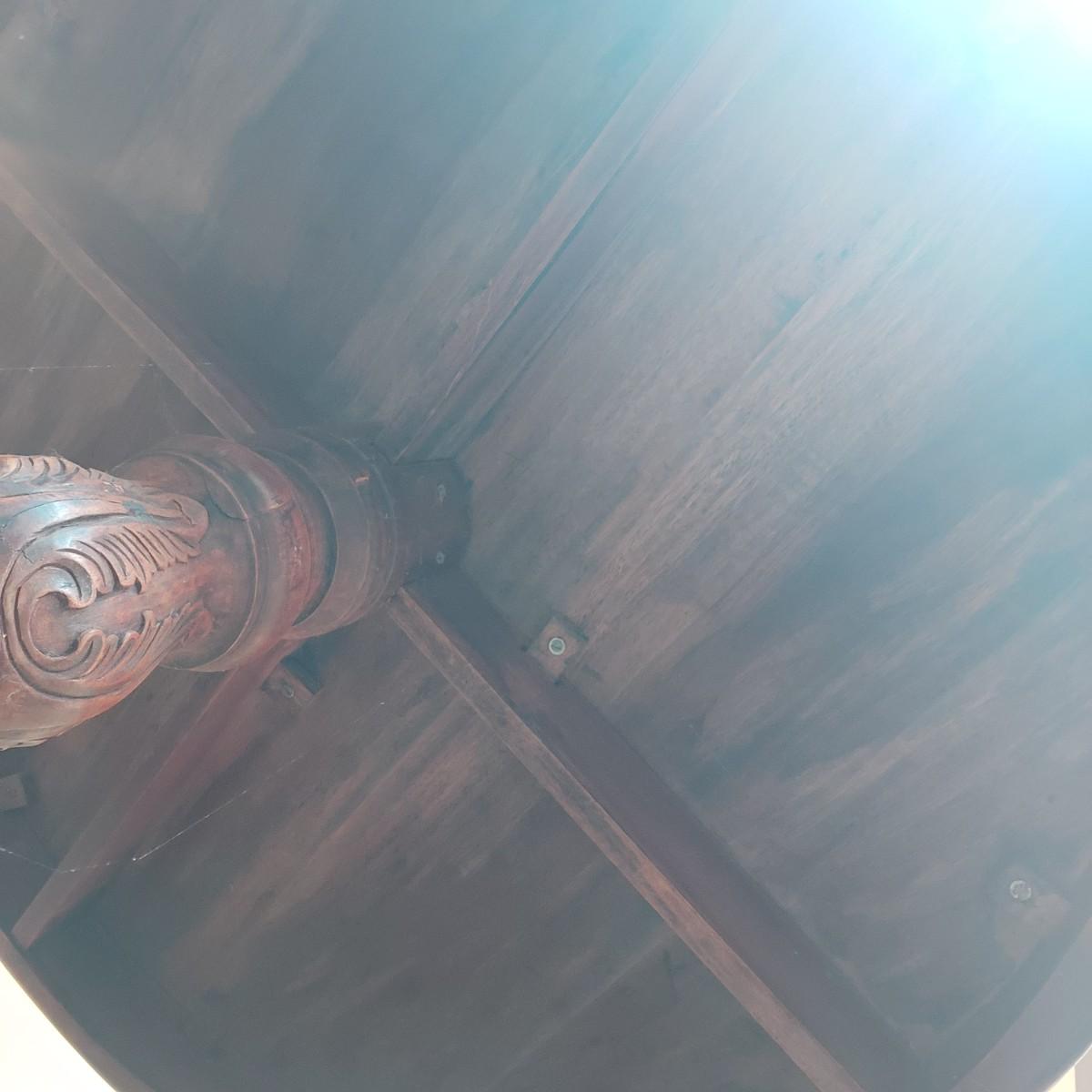 Solid wood round dining room table with carved pedestal and claw feet. Table measures 43"D x 30"H. Some condition issues on top. Please see photos for details. Local Pickup Only