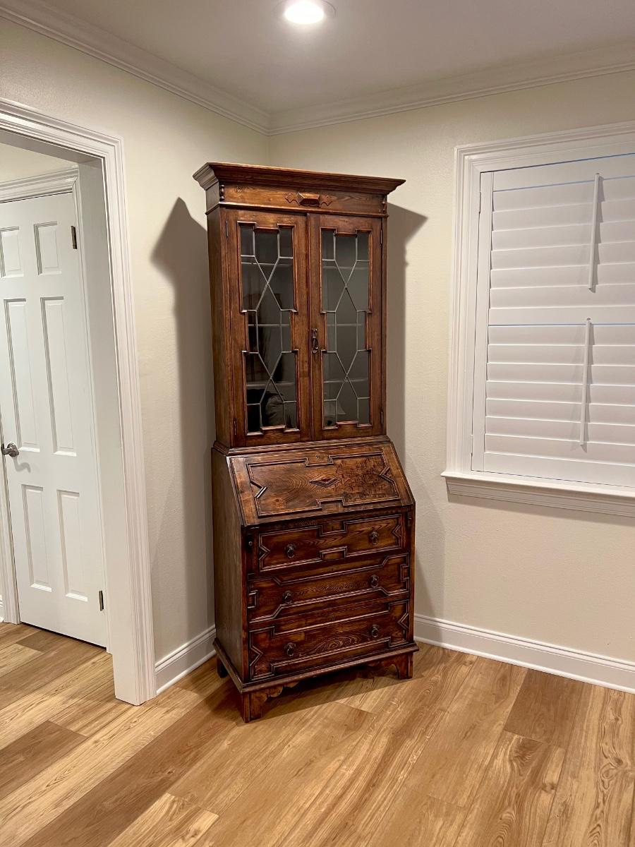 2 Pieces ~ Has key but does not lock ~ No brand name found ~ 1 of the knobs is broken on the slide out ~ 81” H x 32” W x 17” D