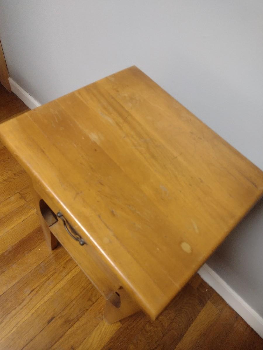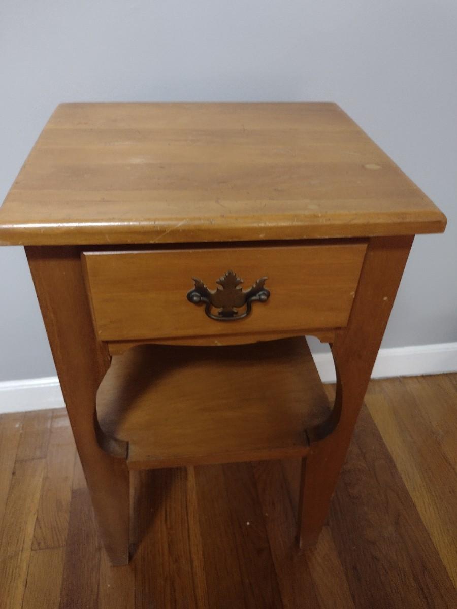 Solid Wood Side Table with Single Drawer and Stretcher Shelf