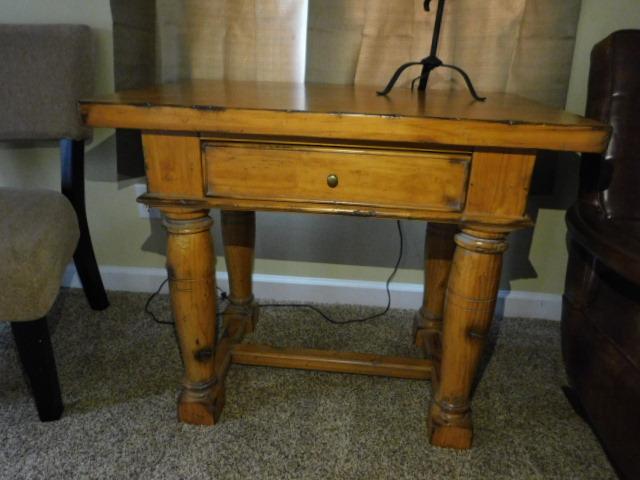 Solid Wood Side Table with Drawer by Forbidden City expect some scratches or wear. This is an impressive piece with great color