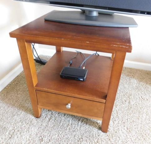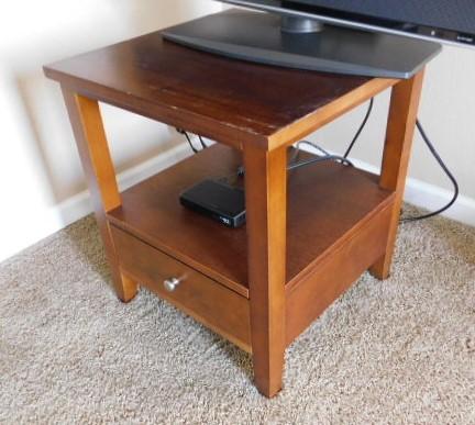 Solid Wood Side Table with Drawer 20"x22" has some wear on surface as pictured. Upstairs