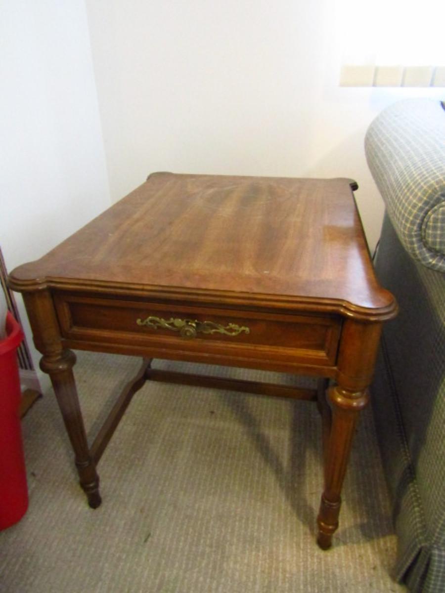 Solid Wood Side Table with Drawer- Choice #2 of 2. Fluted legs, dove-tailed drawer. No maker's mark found.
