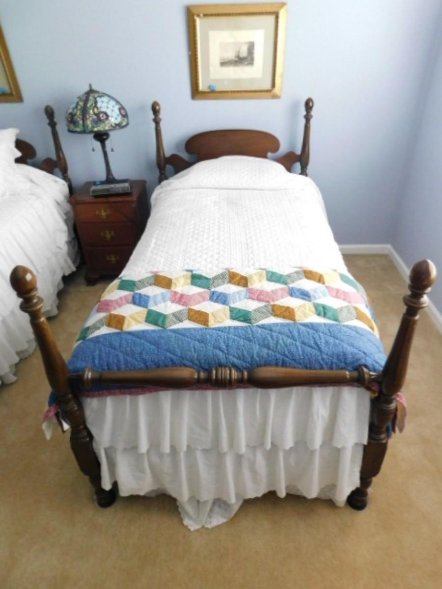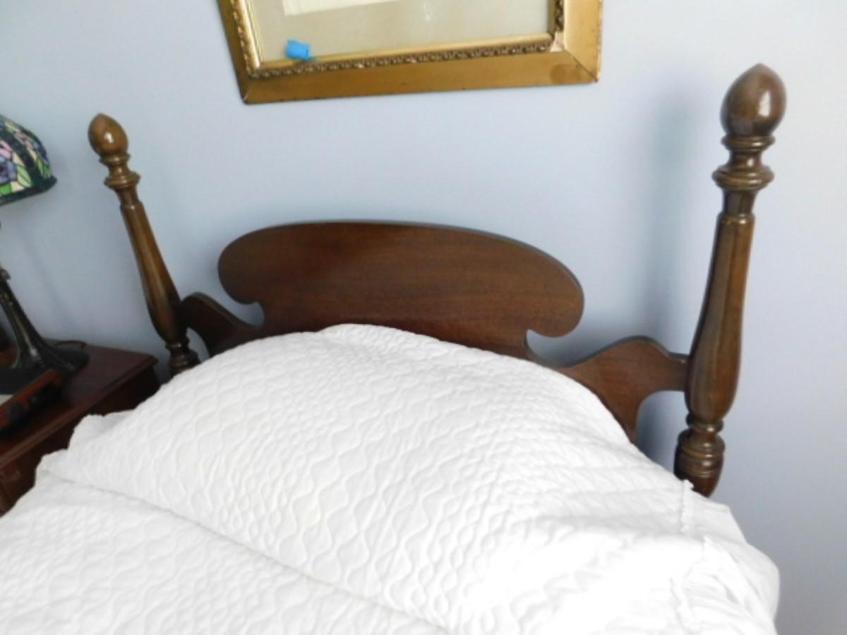 Solid Wood Single Bed with Mattress and Bedding Set Choice A. Downstairs item. Buyer must bring tools to breakdown.