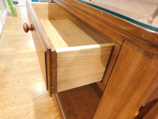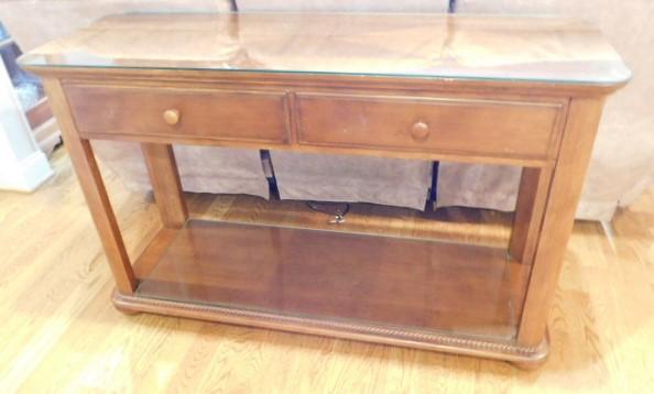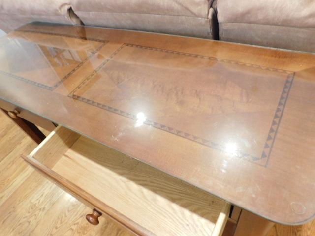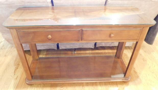 Solid Wood Sofa Table with Two Drawers and Protective Glass Top:  51" x 18 1/2" x 32 1/2"
