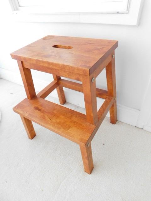 Solid Wood Step Stool Dark Stain