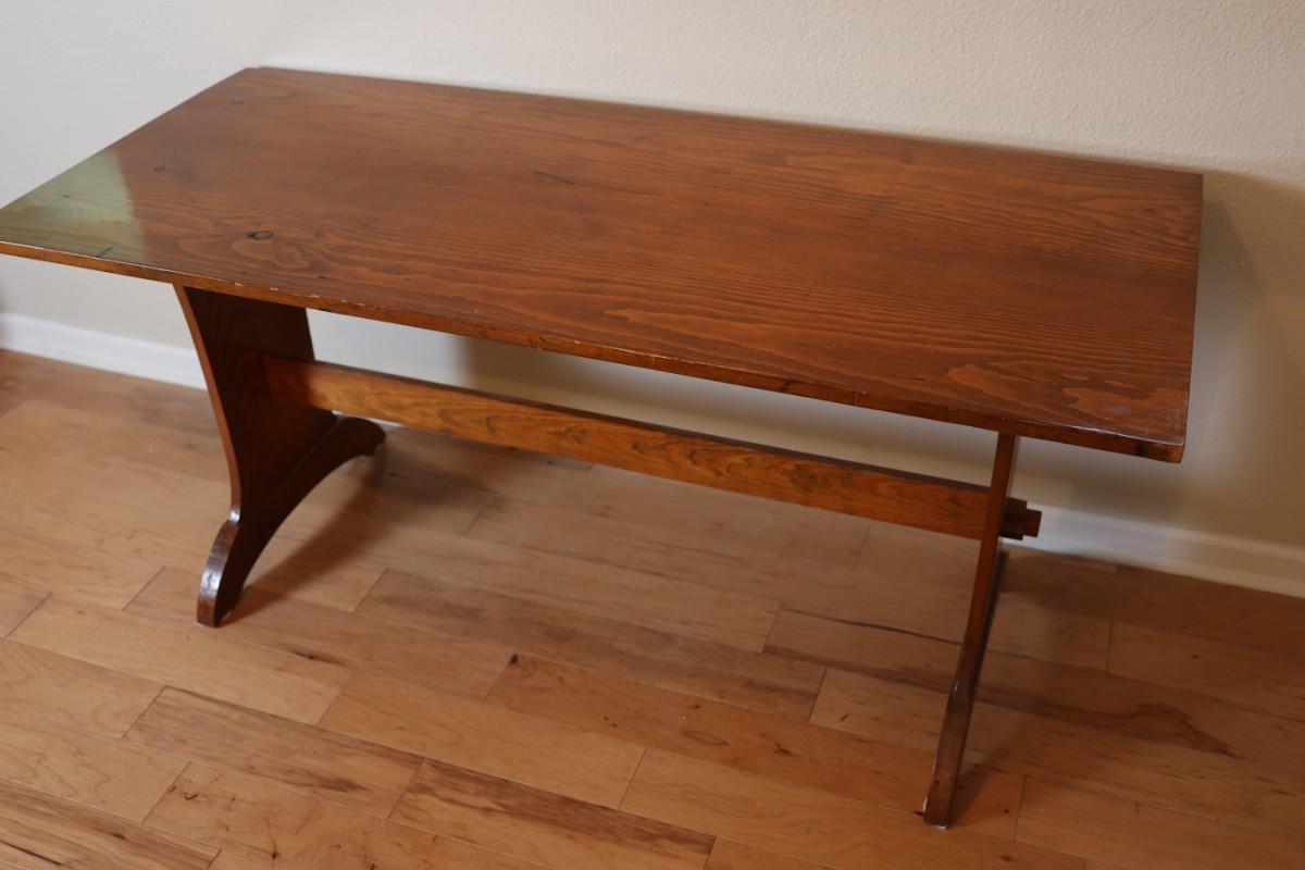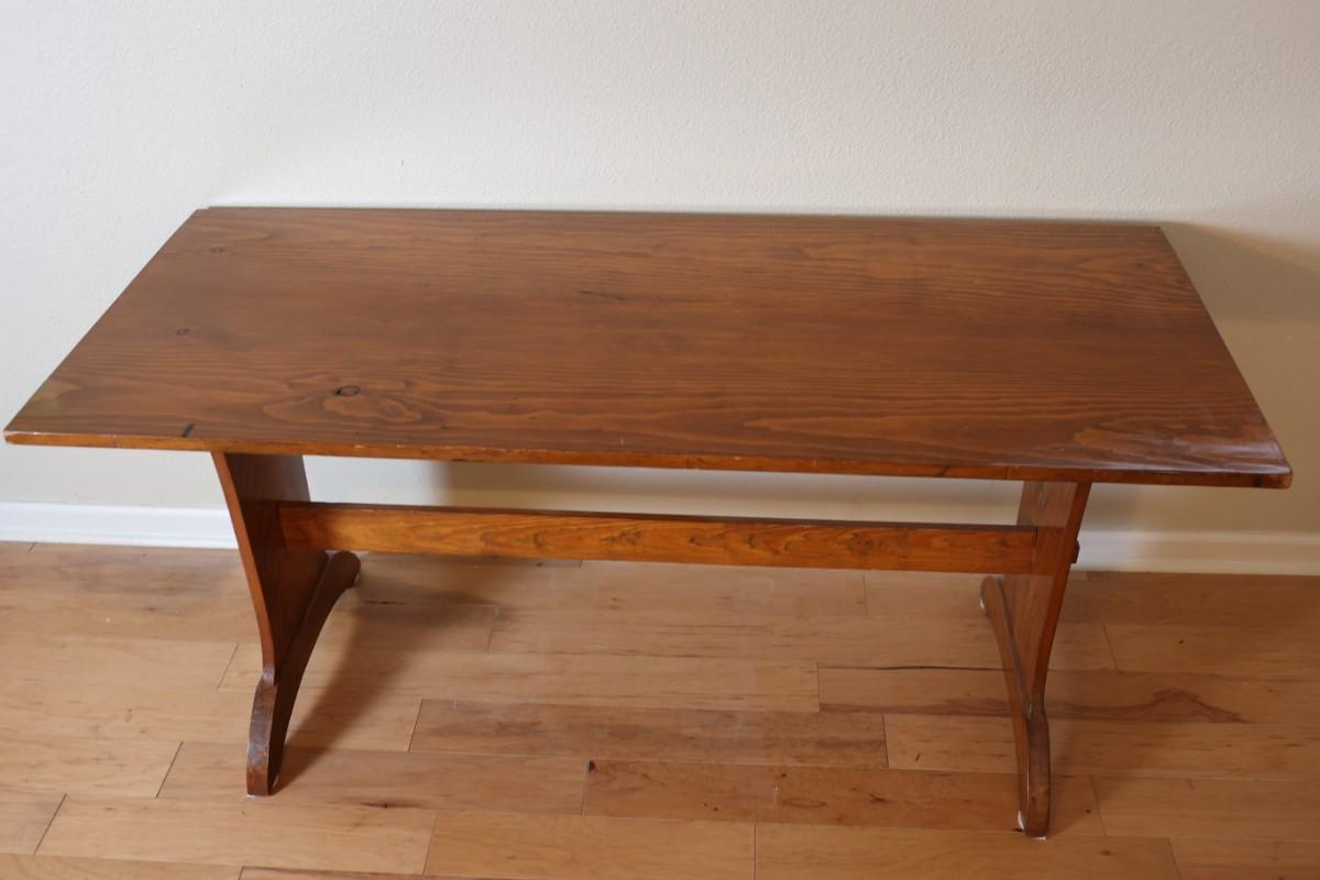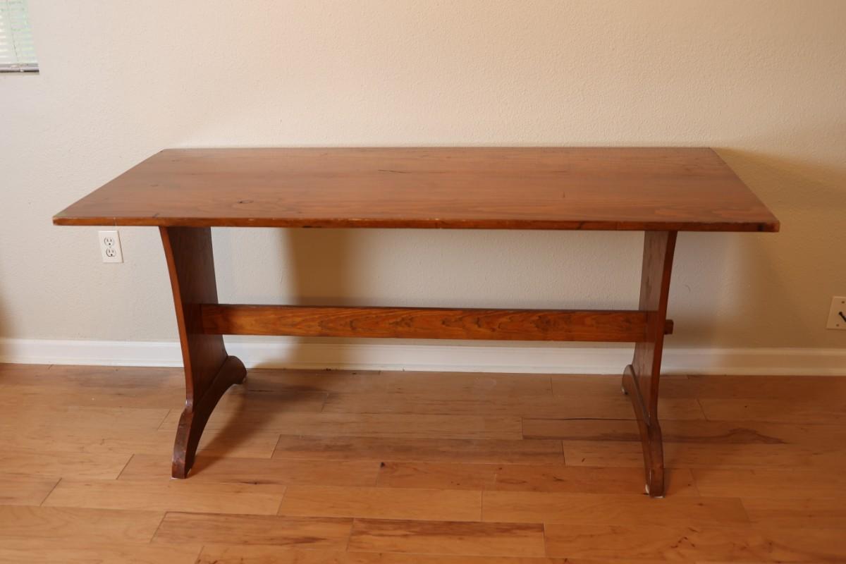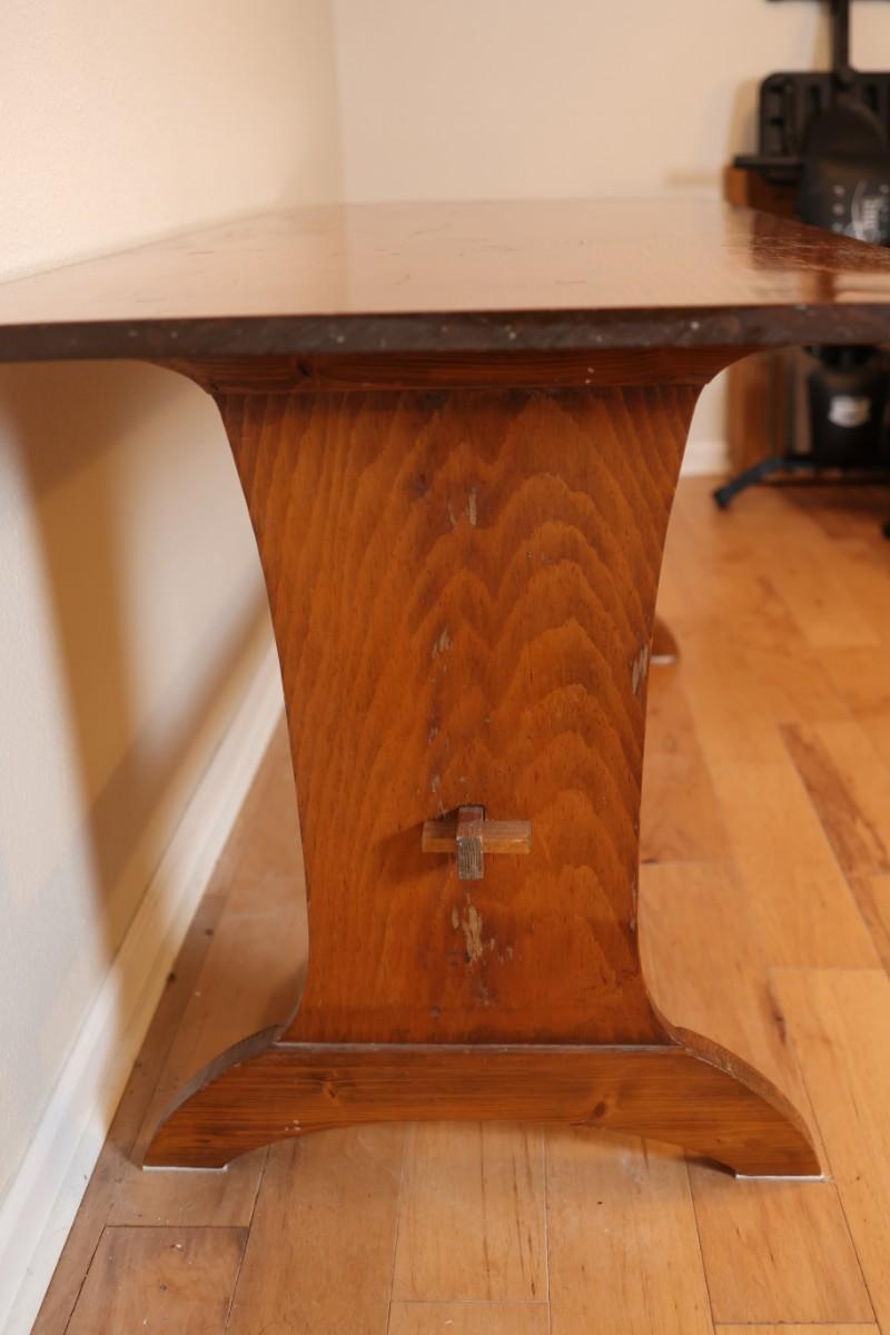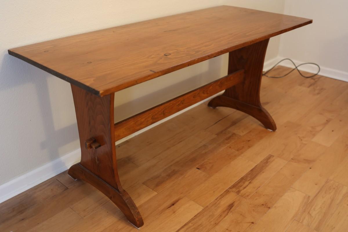 Built and gifted by relative in 1984. Is easy to assemble and disassemble to move. The table is shaky and will need to be tightened. Great for use as a desk, console, or kitchen table.