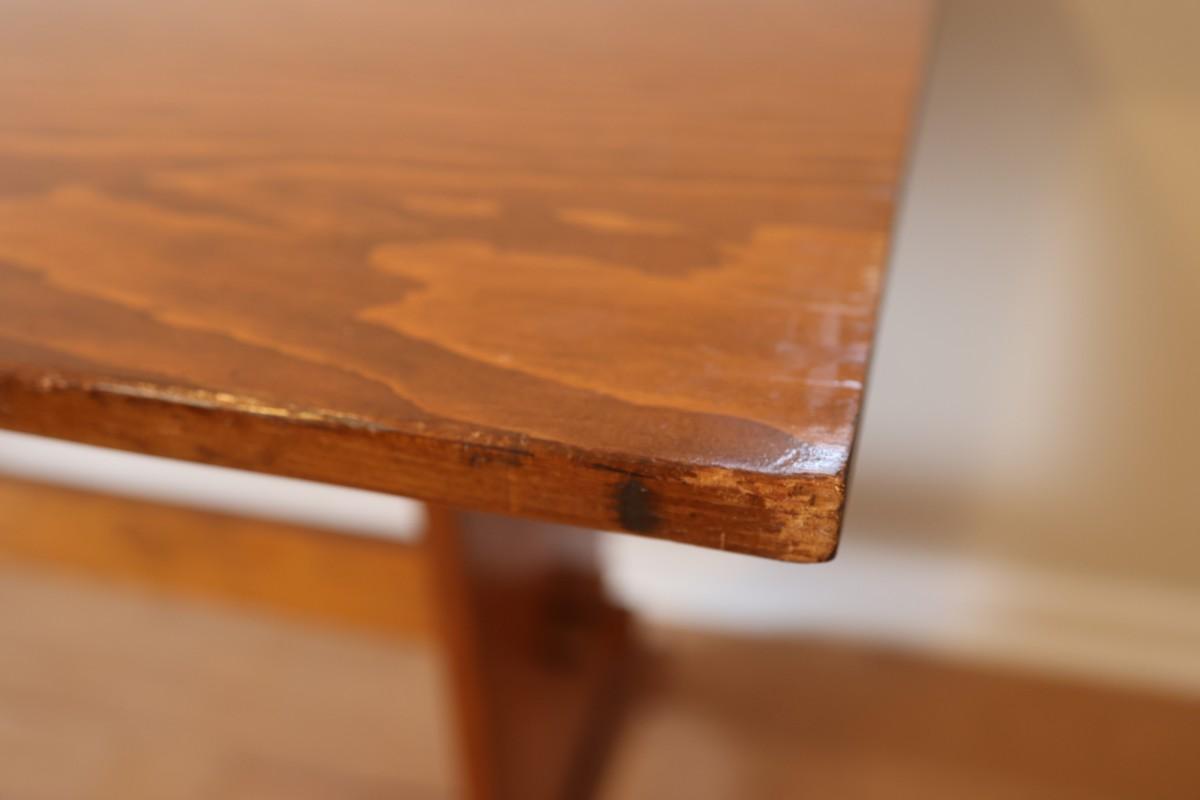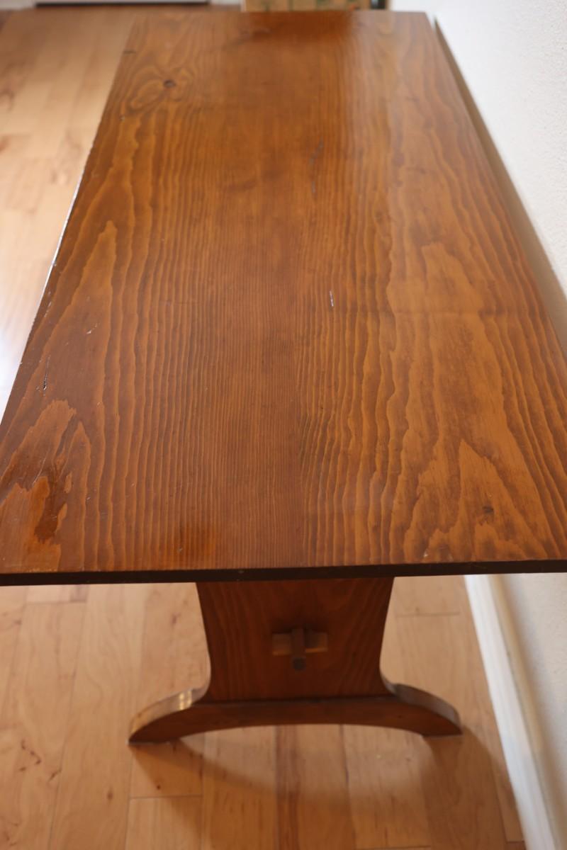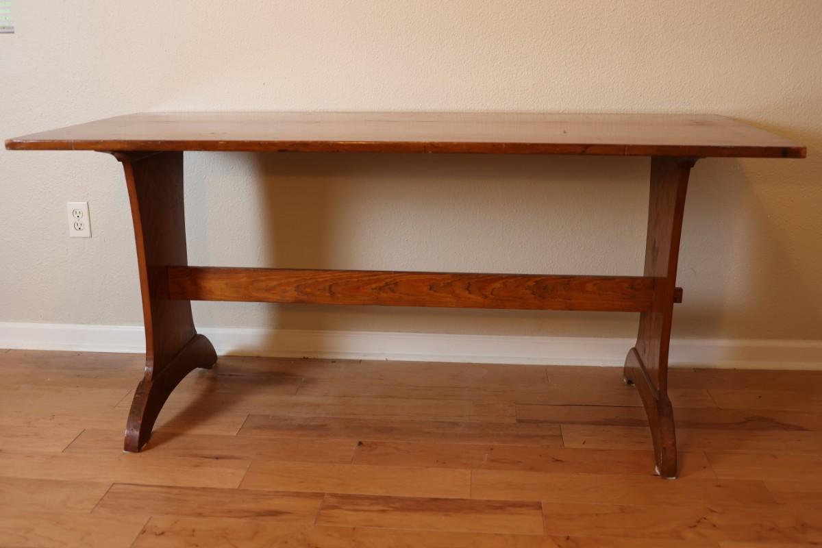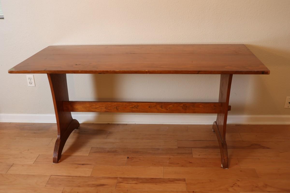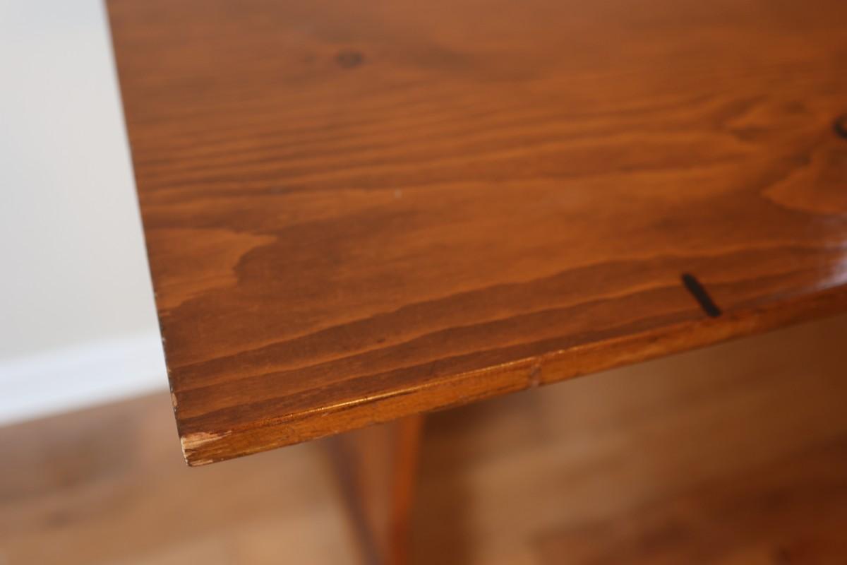 Built and gifted by relative in 1984. Is easy to assemble and disassemble to move. The table is shaky and will need to be tightened. Great for use as a desk, console, or kitchen table.