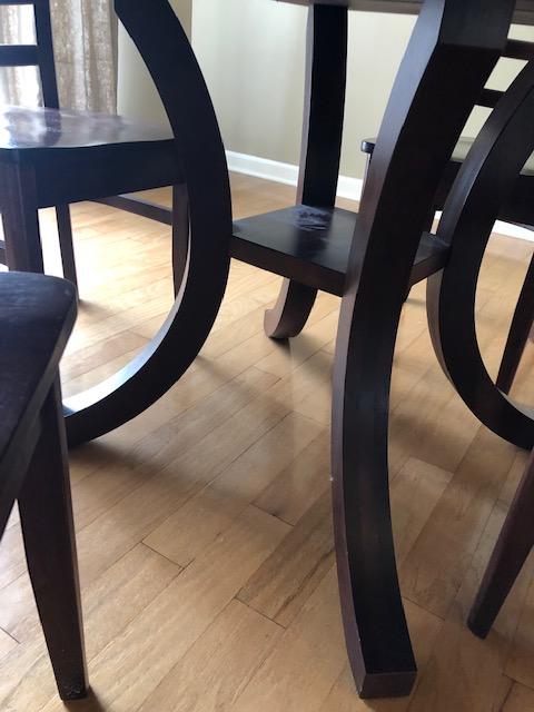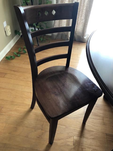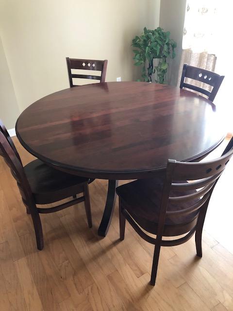Well-made. Very solid. Chairs in great shape. Table also. Table is 53” in