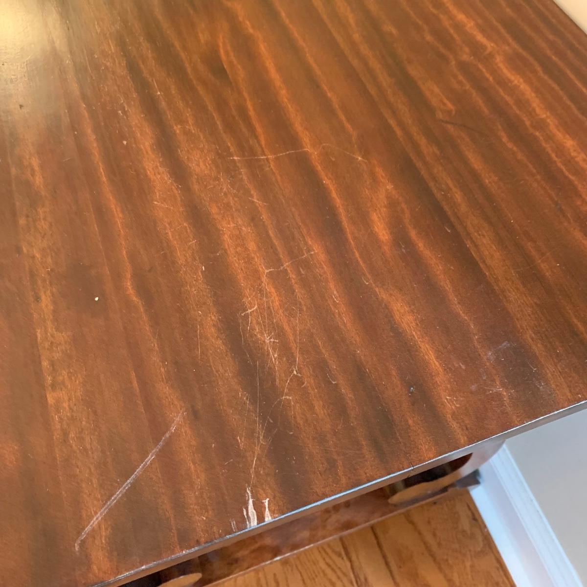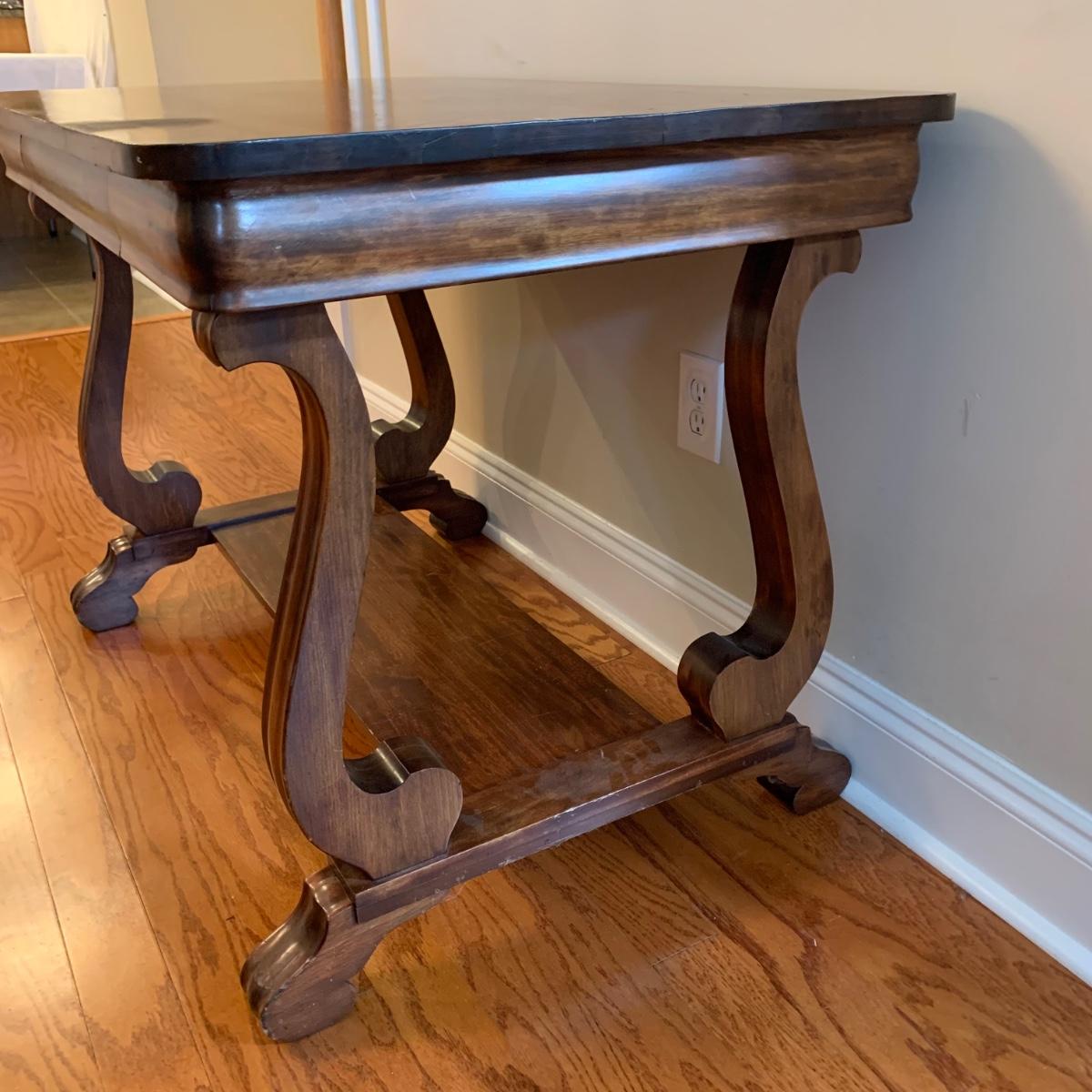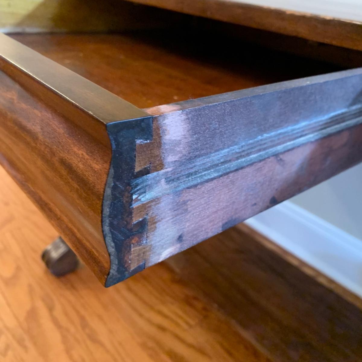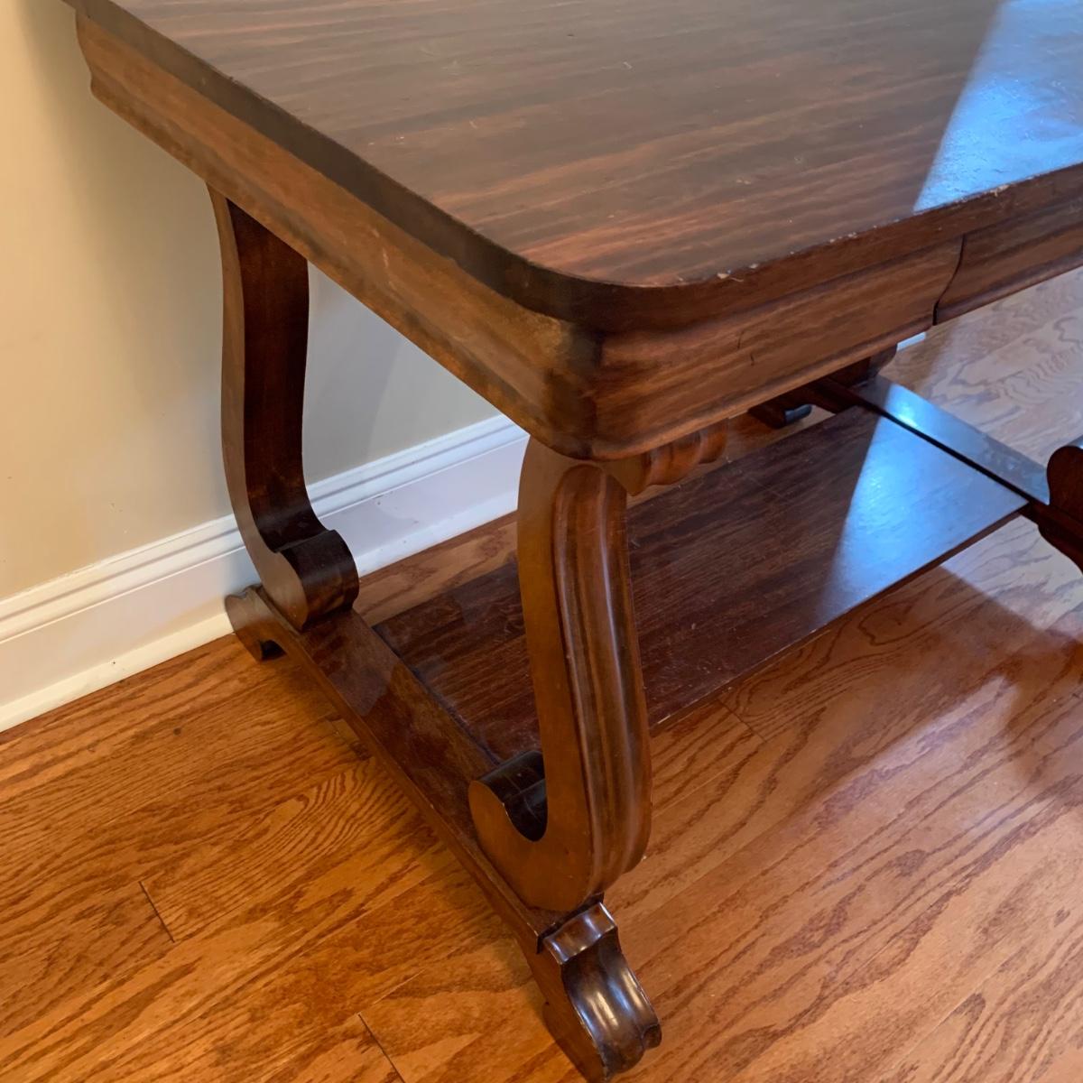 Solid wood table by Knoxville Tables Table and Chair Company. Table has a single dovetailed drawer. Table measures 42” x 26.5” x 28.5”H. It has some scuffs and nicks; see photos.