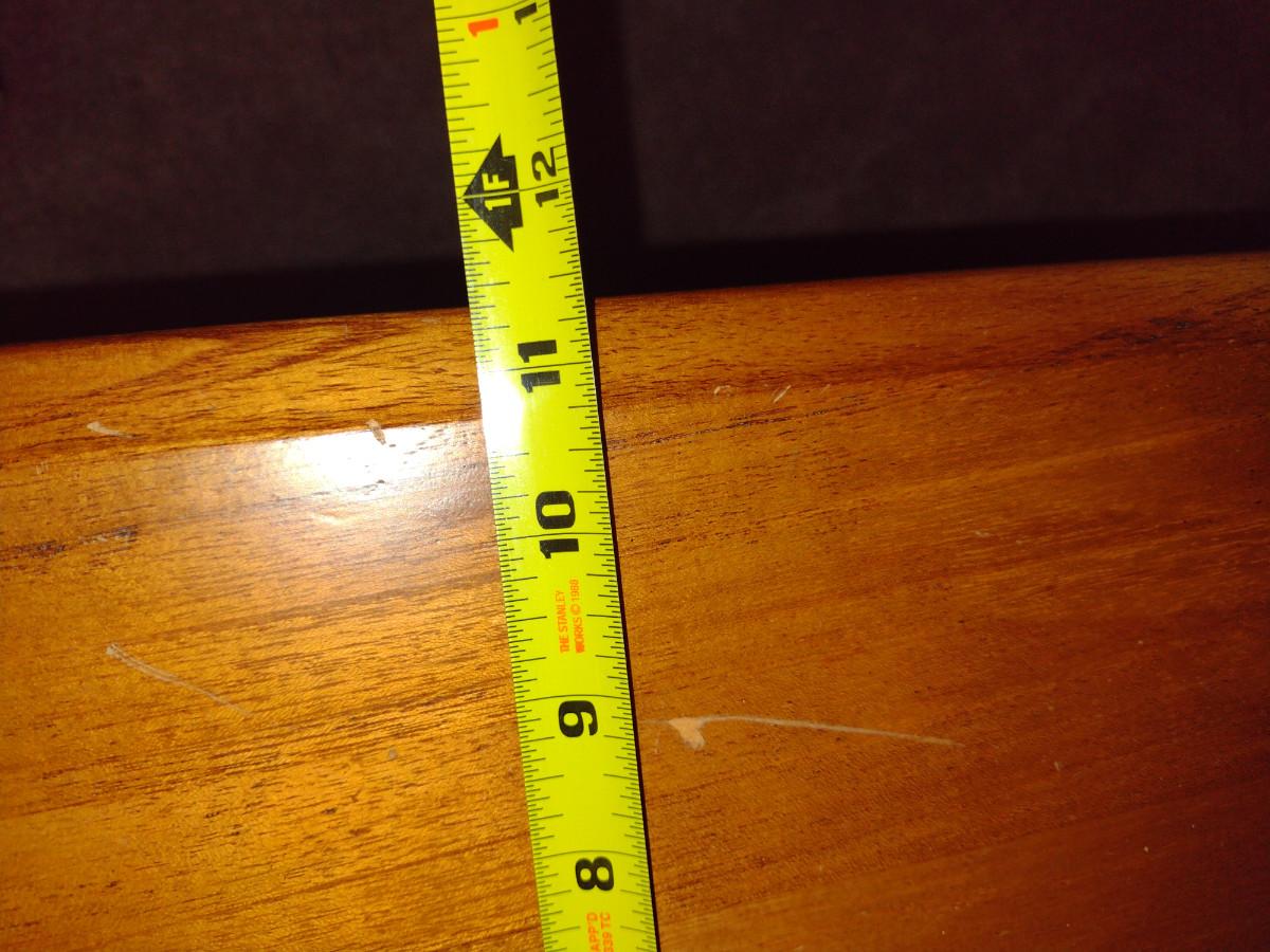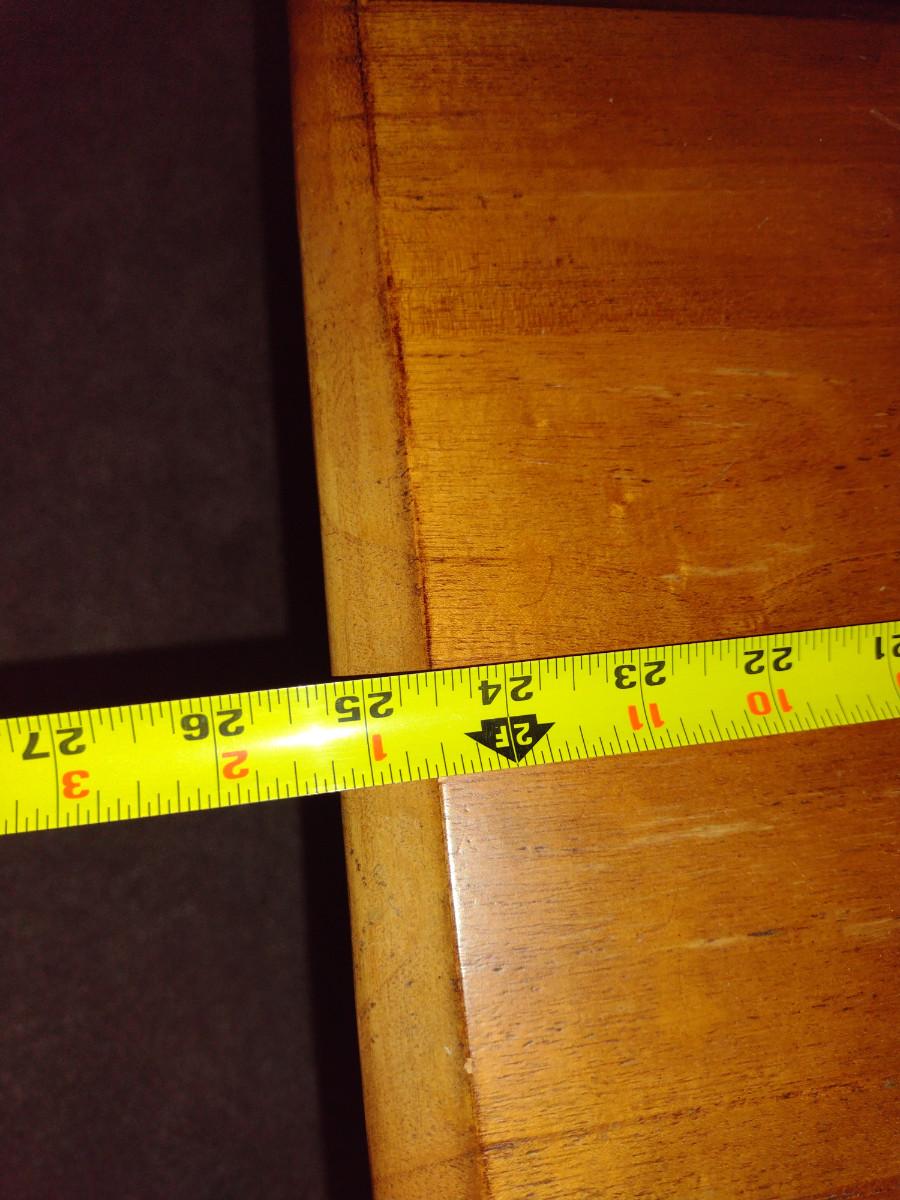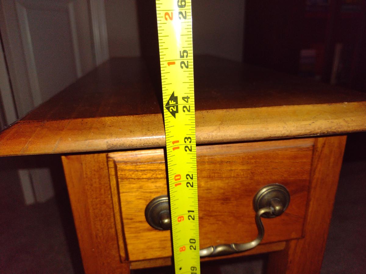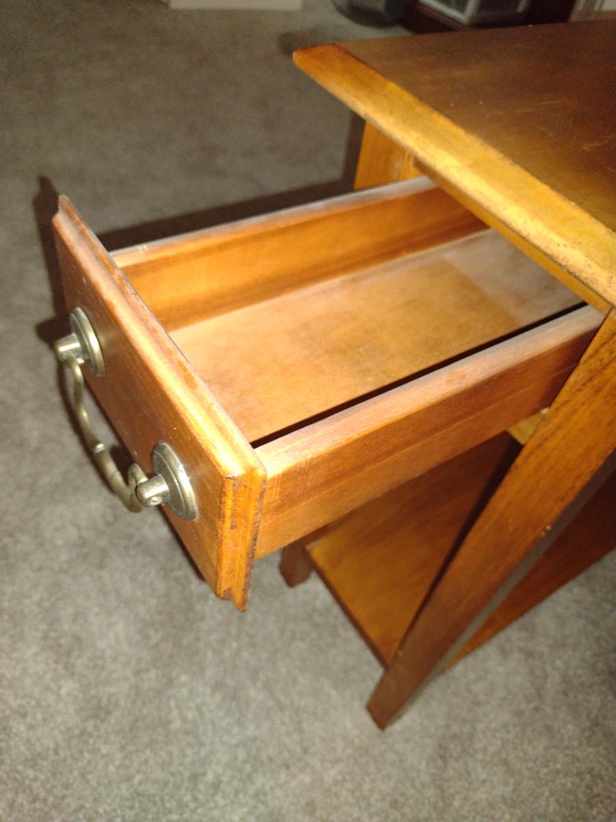 Solid Wood Thin Side Table with Drawer. Measures approx 25" long, 11" wide, 24" tall. Item needs to be tightened.