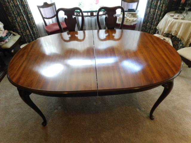 Solid Wood Thomasville Dining Table with 8 Matching Chairs and Two 20" Leaves with Padded Cover