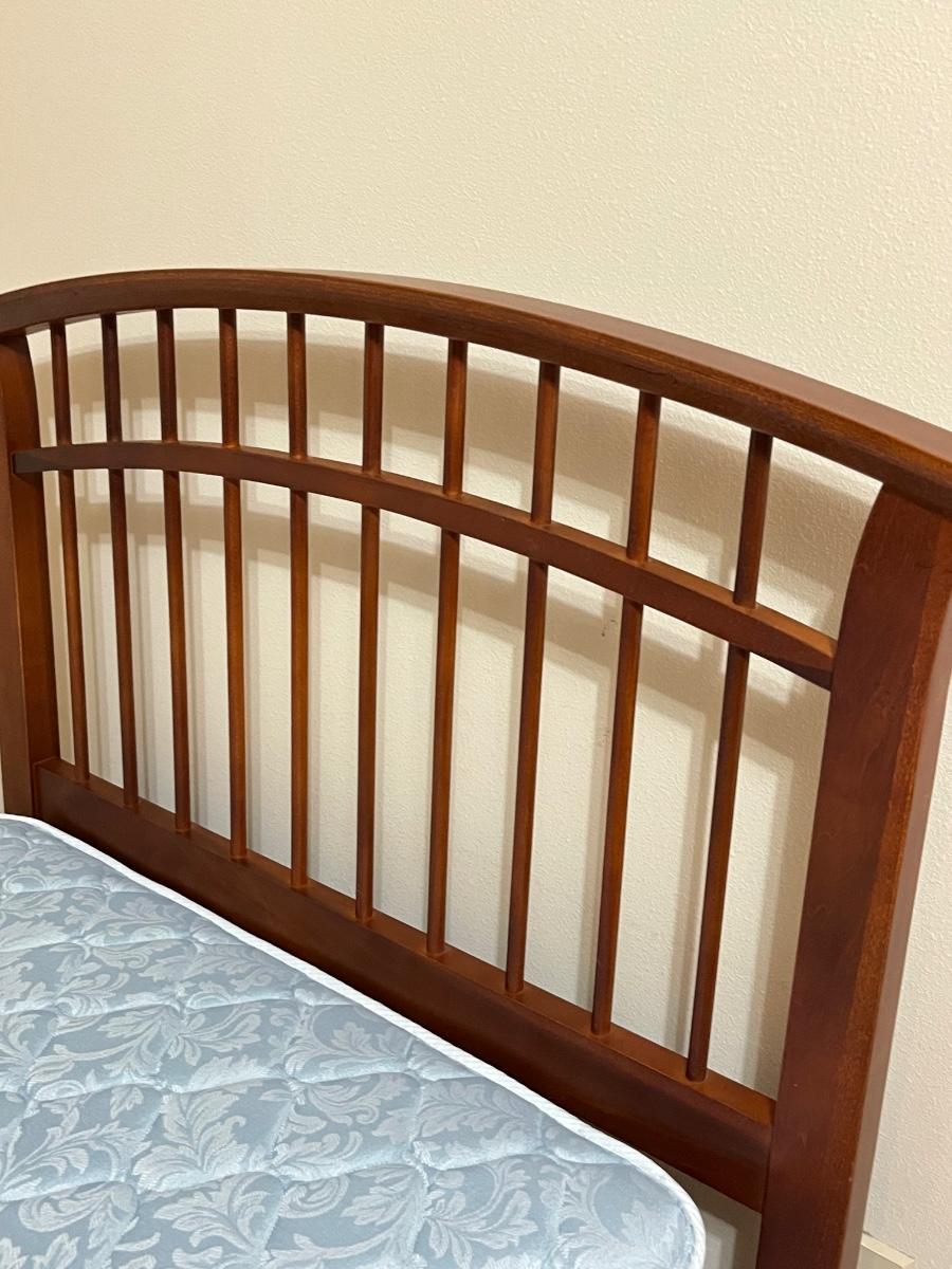 Headboard 46” H ~ Bedframe included has casters attached ~ Has been disinfected, deodorized & sanitized.