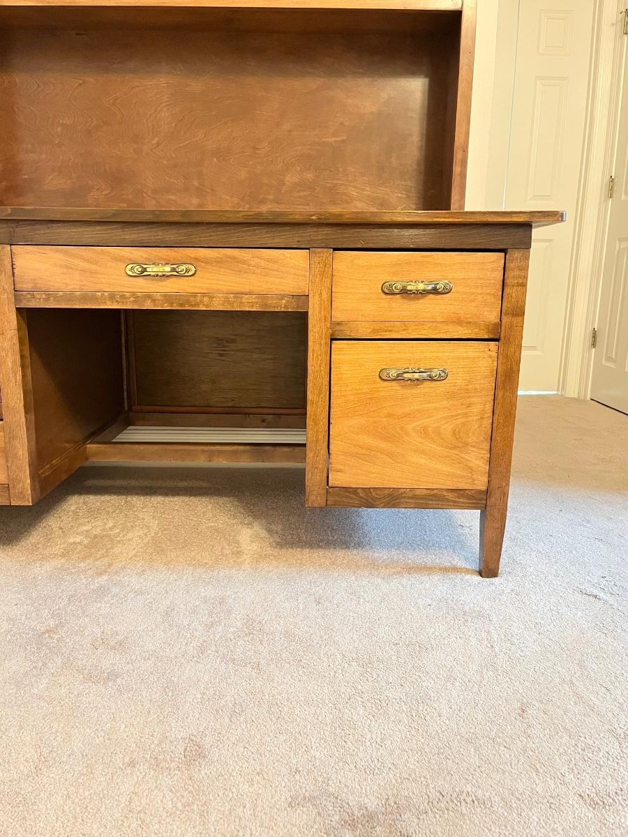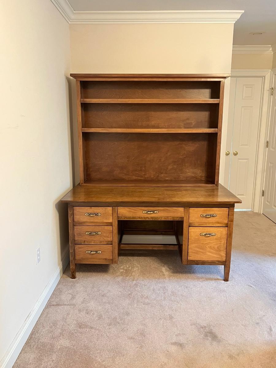 Hutch is removable ~ Needs a little TLC ~ Desk 30” H x 60” W x 33” D ~ Hutch 43” H x 60” W x 9” D